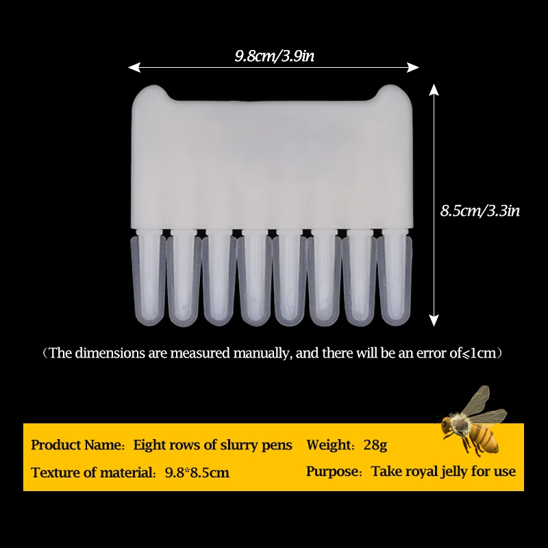 Nombre del producto: Royal Jelly Picking Pen Objeto aplicable: Jalea Real Tamaño del producto: 8,5 cm X 9,8 cm Peso del producto: 30g Características del producto: desmontable Cantidad del producto: 1 piezas