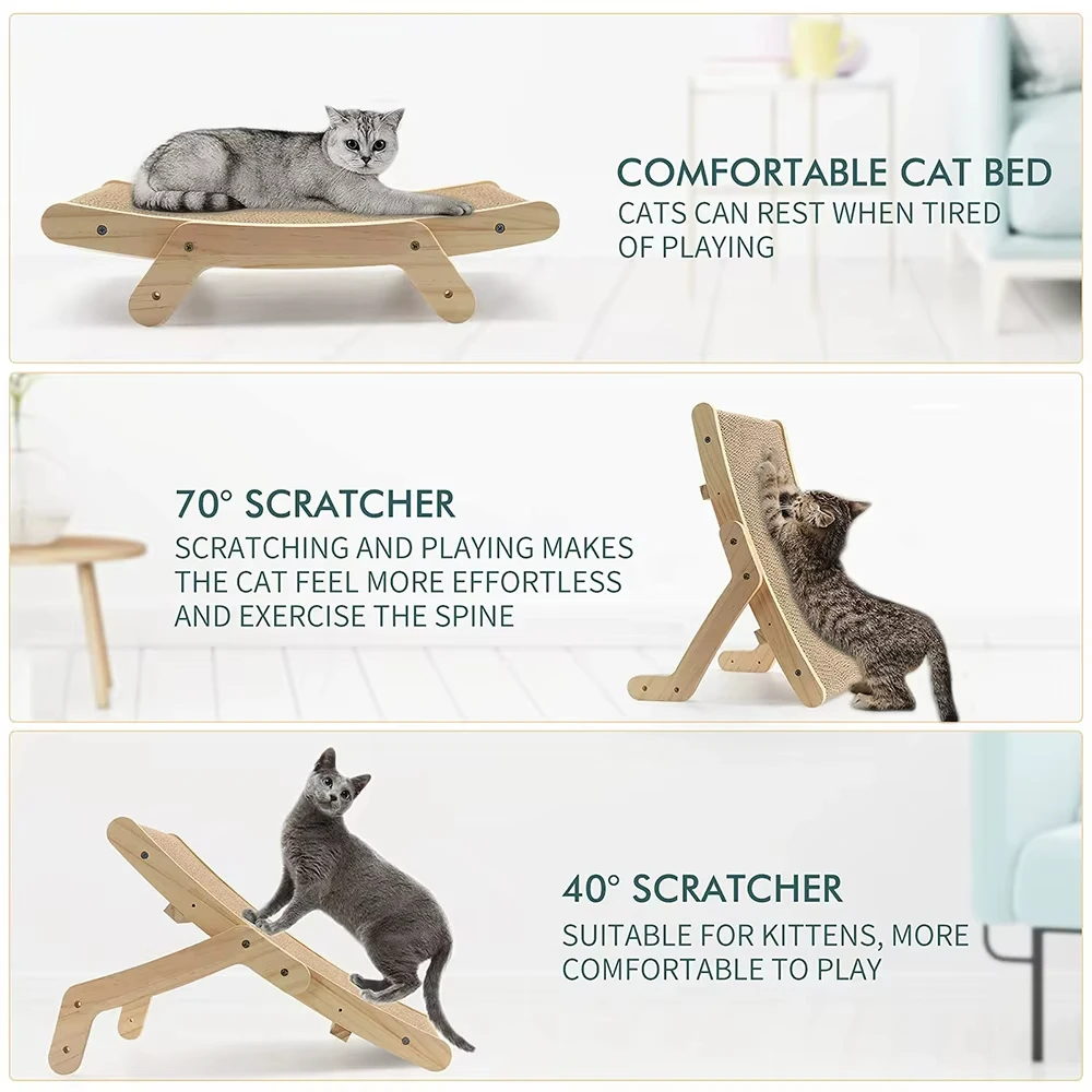Rascador de madera 3 en 1 para gatos y poste de cama para gatos con núcleo de repuesto, Protector antiarañazos para el cuidado de las garras de gato y protección de muebles