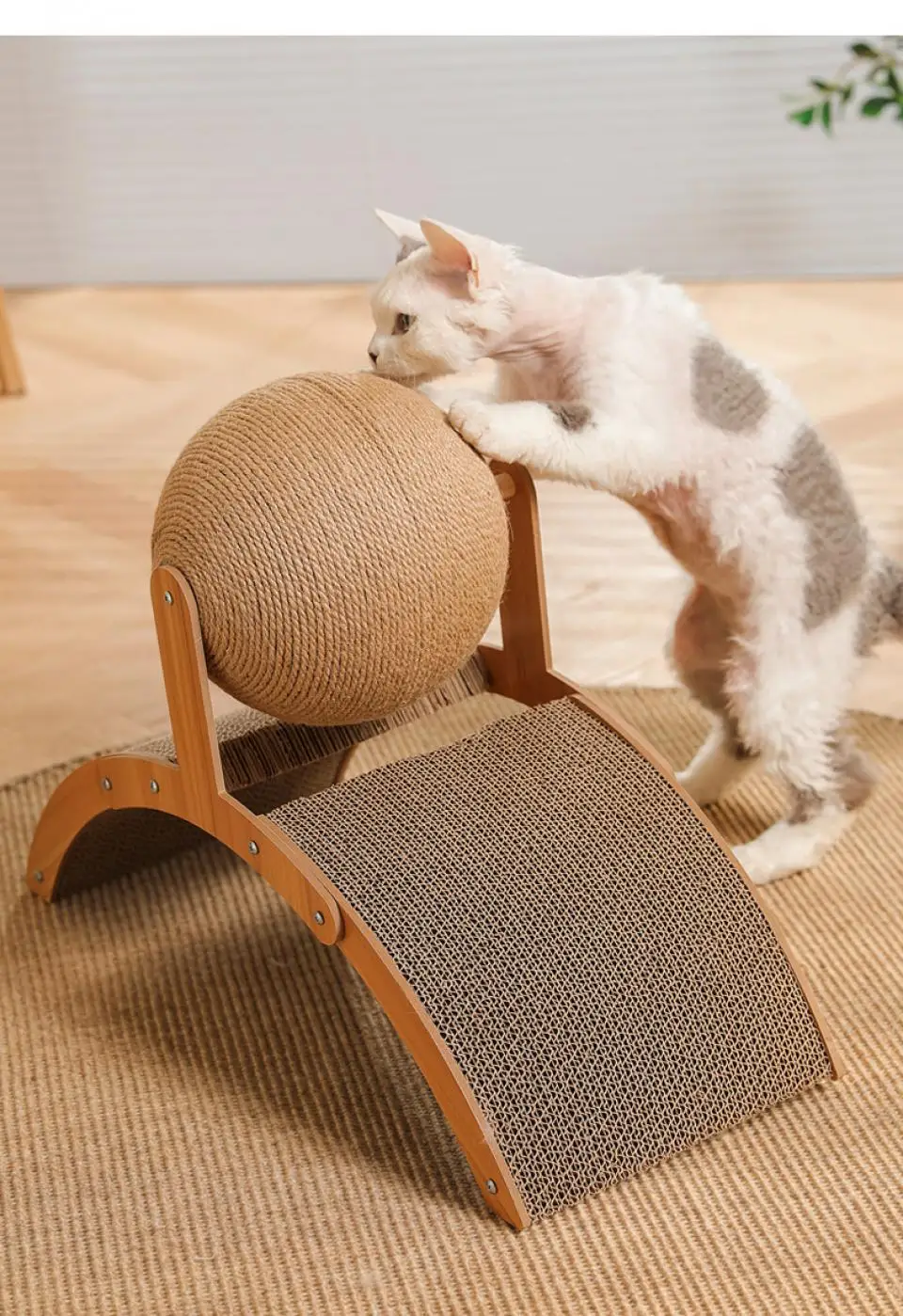 Rascador de madera para gatos, bola rascadora de Sisal 2 en 1, juguete de pata de molienda resistente al desgaste, tablero rascador de madera maciza para gatos