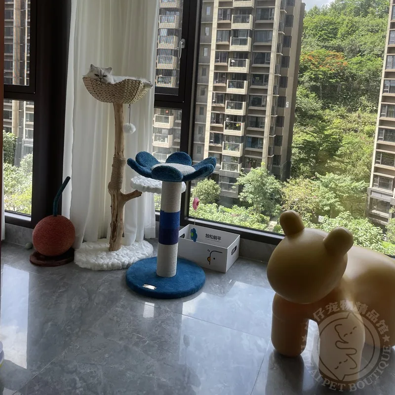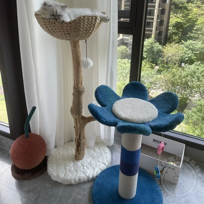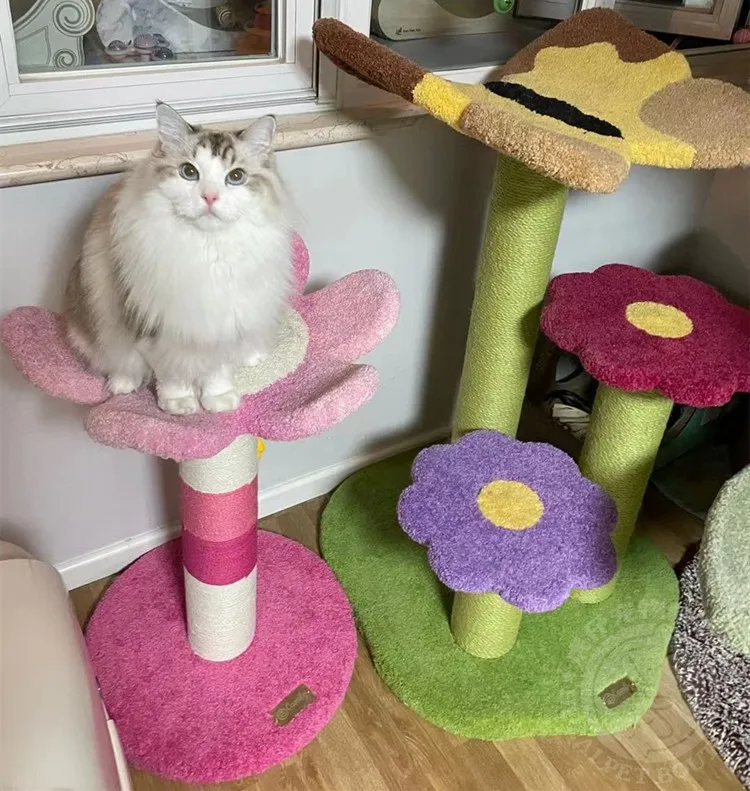 Rascador multicolor para gatos y flores, poste para escalar en la pared, árbol, suministros de entrenamiento para mascotas, accesorios para muebles