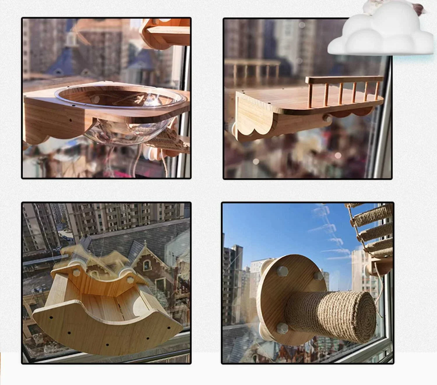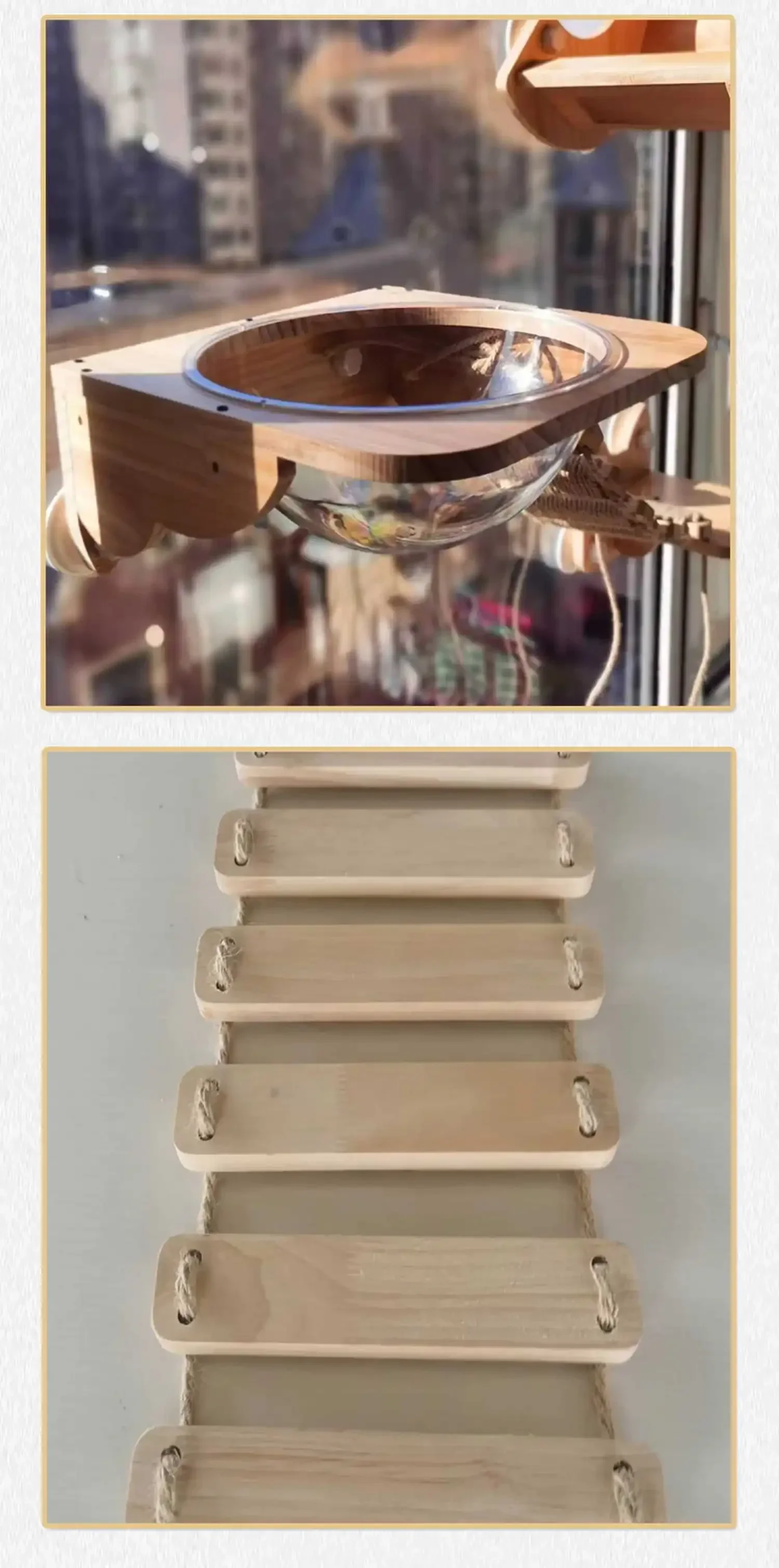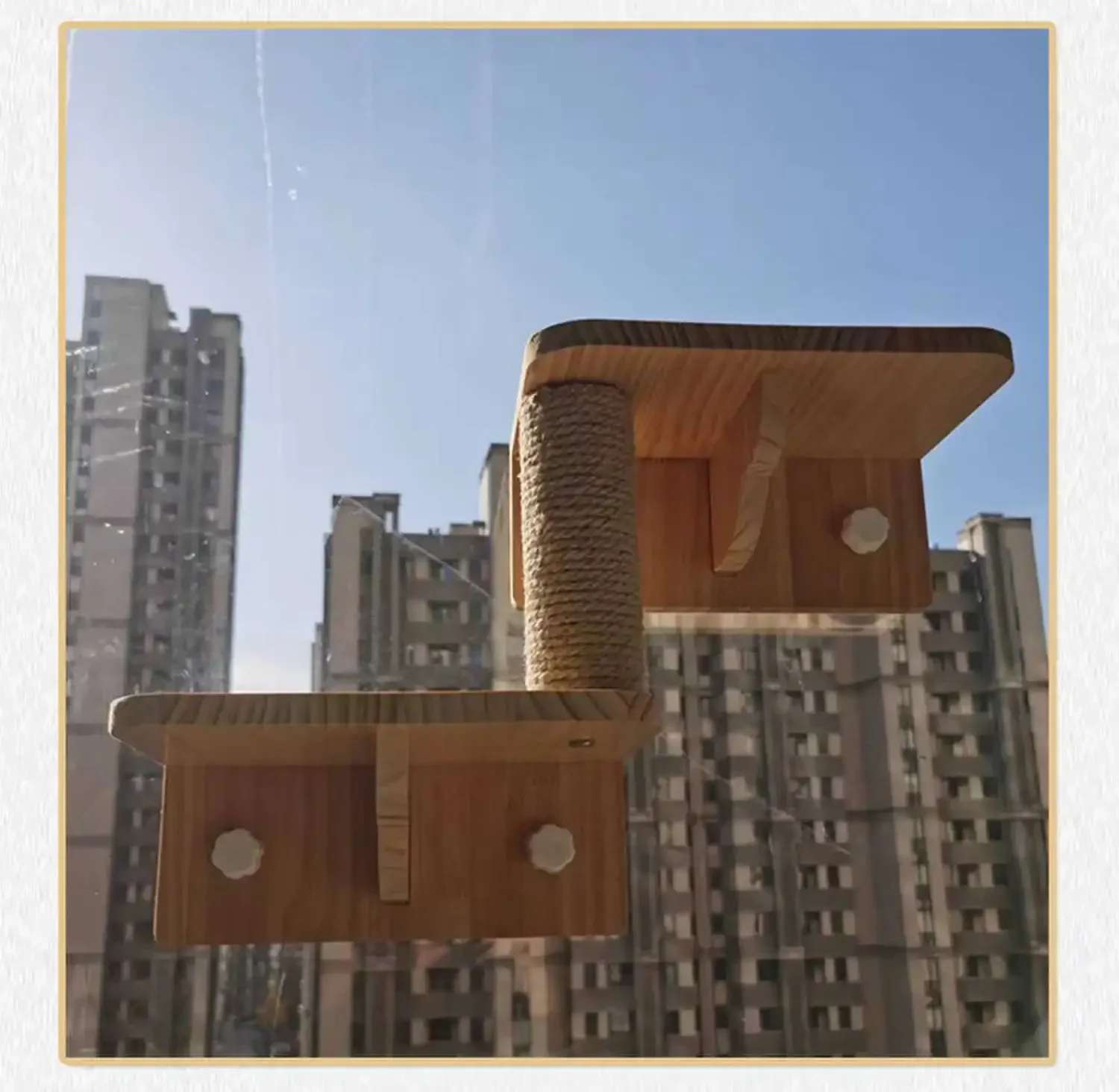 Rascador de pared de madera maciza para gatos, poste de rascado transparente para interiores, nave espacial, trampolín, accesorios para gatos, muebles de madera