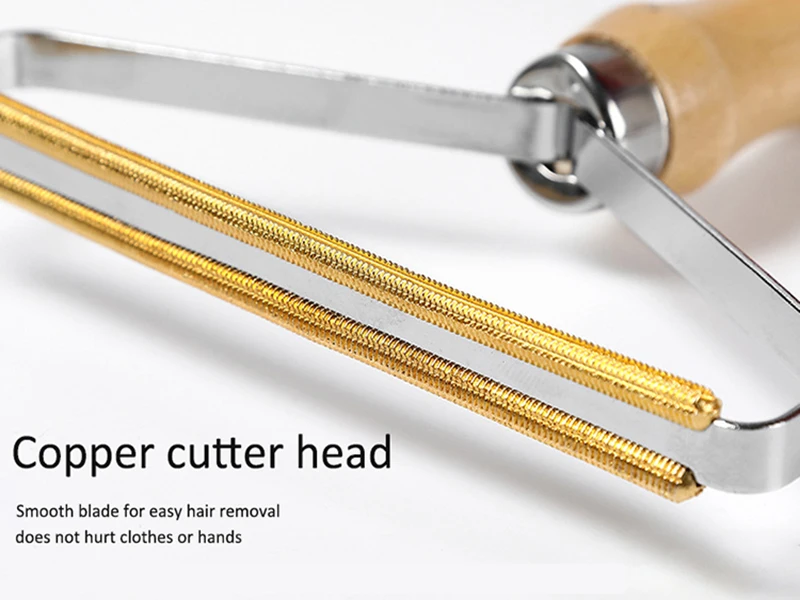 Para telas como alfombras y abrigos, recomendamos el mango de madera, ya que tiene una punta más afilada y elimina las pelusas más a fondo.