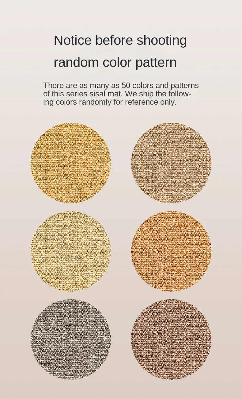 4. Debido a que el color del sisal natural es aleatorio, el color del producto también lo es. Si tiene algún color favorito, contáctenos y haremos todo lo posible para encontrar el color que le guste. Gracias por su comprensión.