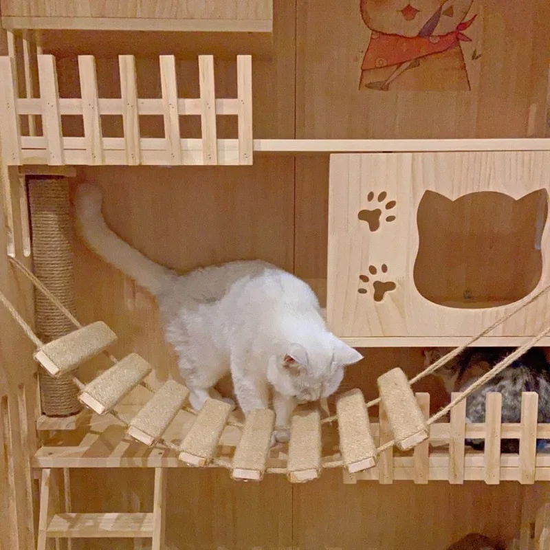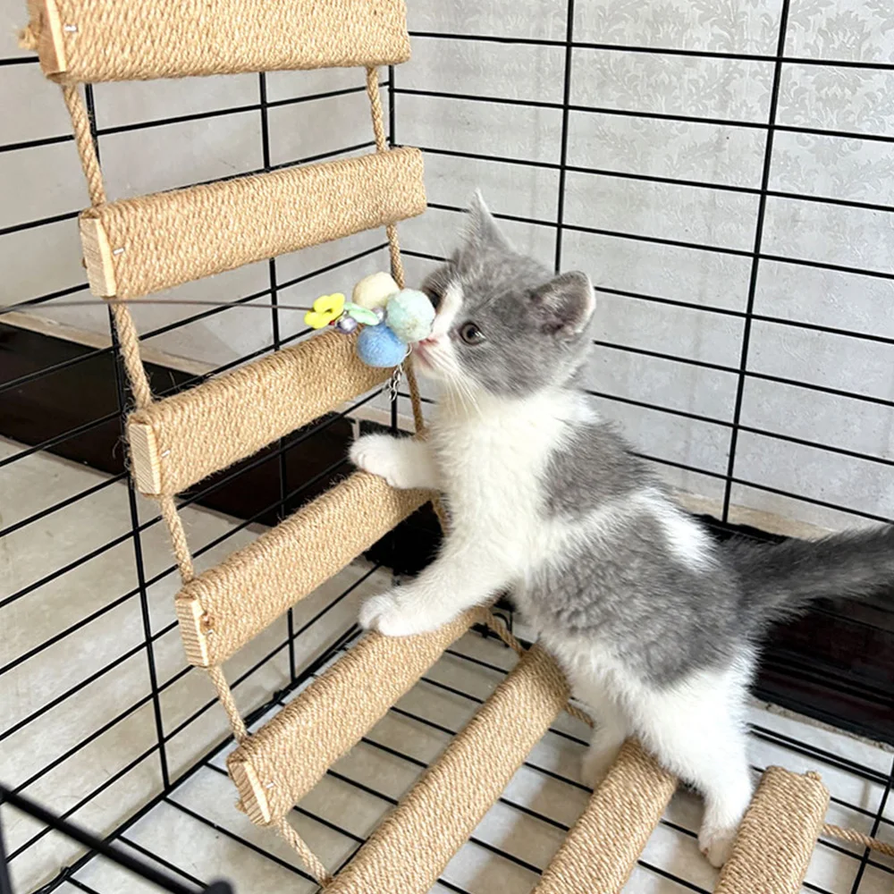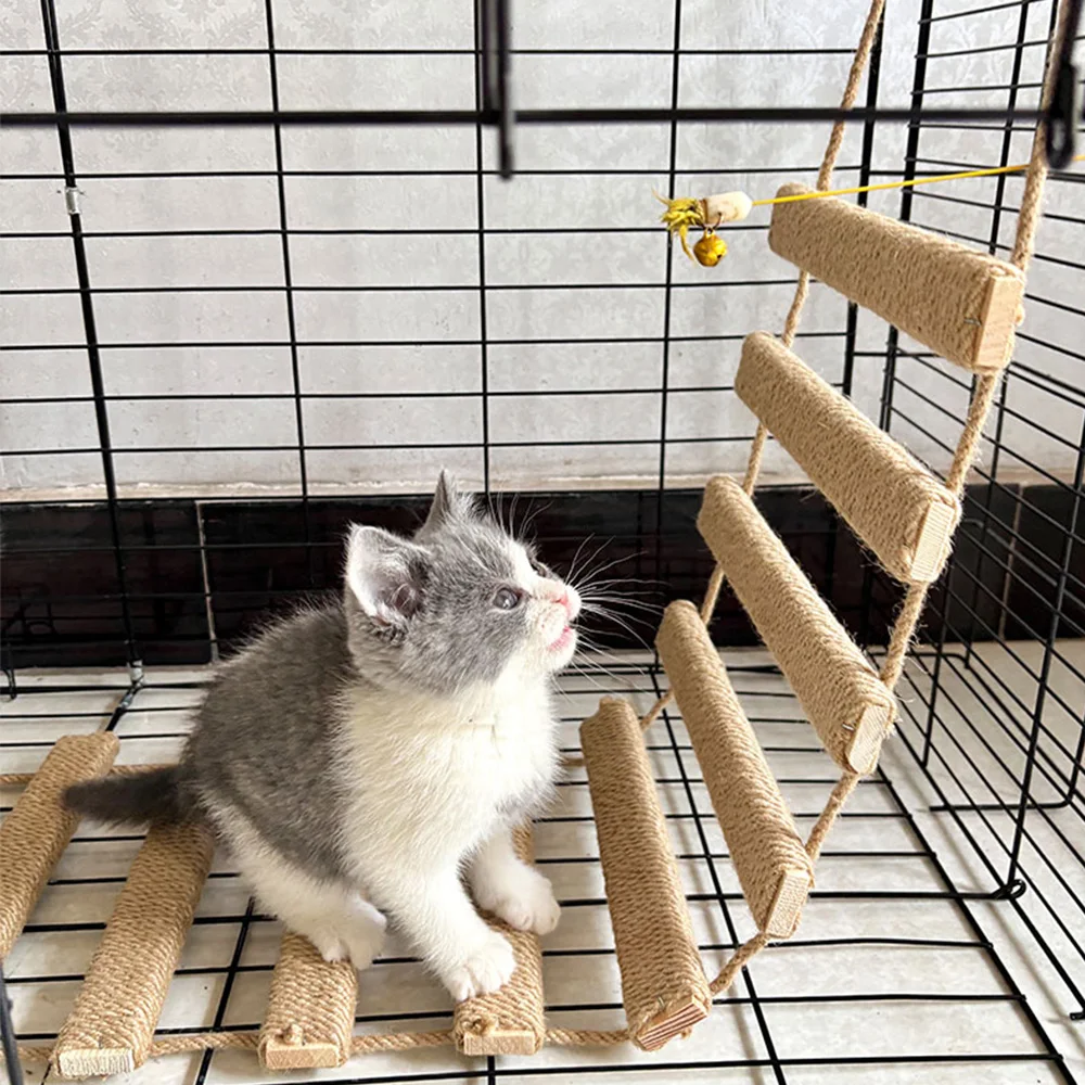 The design of the rope ladder perfectly matches the cat's nature of climbing and exploring. Step by step pedals paired with soft and resilient ropes create a challenging and enjoyable vertical space for cats. Cats can jump and shuttle freely on it, satisfying their curiosity and exploratory desire, effectively avoiding the behavior of cats breaking up their homes due to boredom.