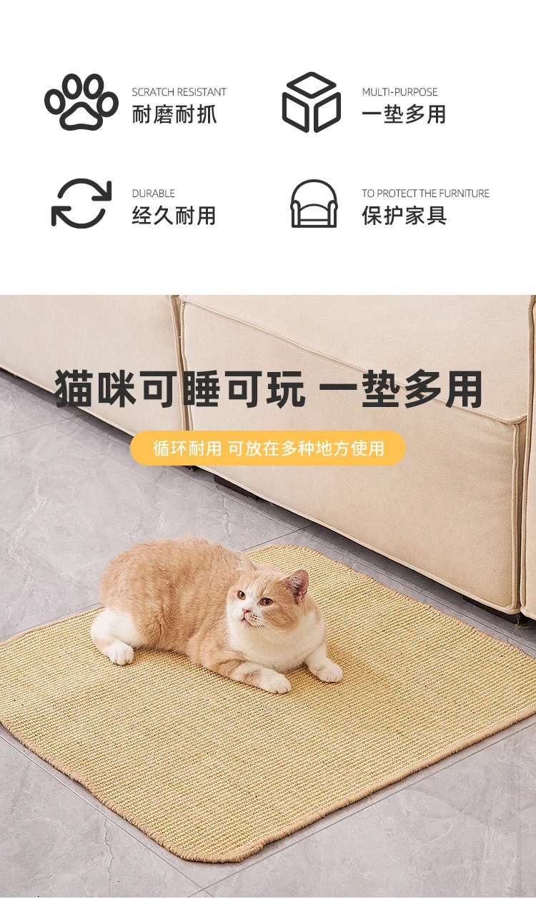 Un buen rascador para gatos. Lo único que no se pensó bien fue no incluir catnip para atraerlos. Mi gato rasca contra la alfombrilla y no entiende que está ahí para rascar.