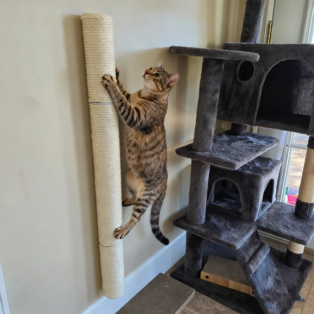 Rascador de gato montado en la pared de sisal Natural, poste rascador Vertical para gatos de interior, muebles de gato para molienda de garra, juguete para gatos