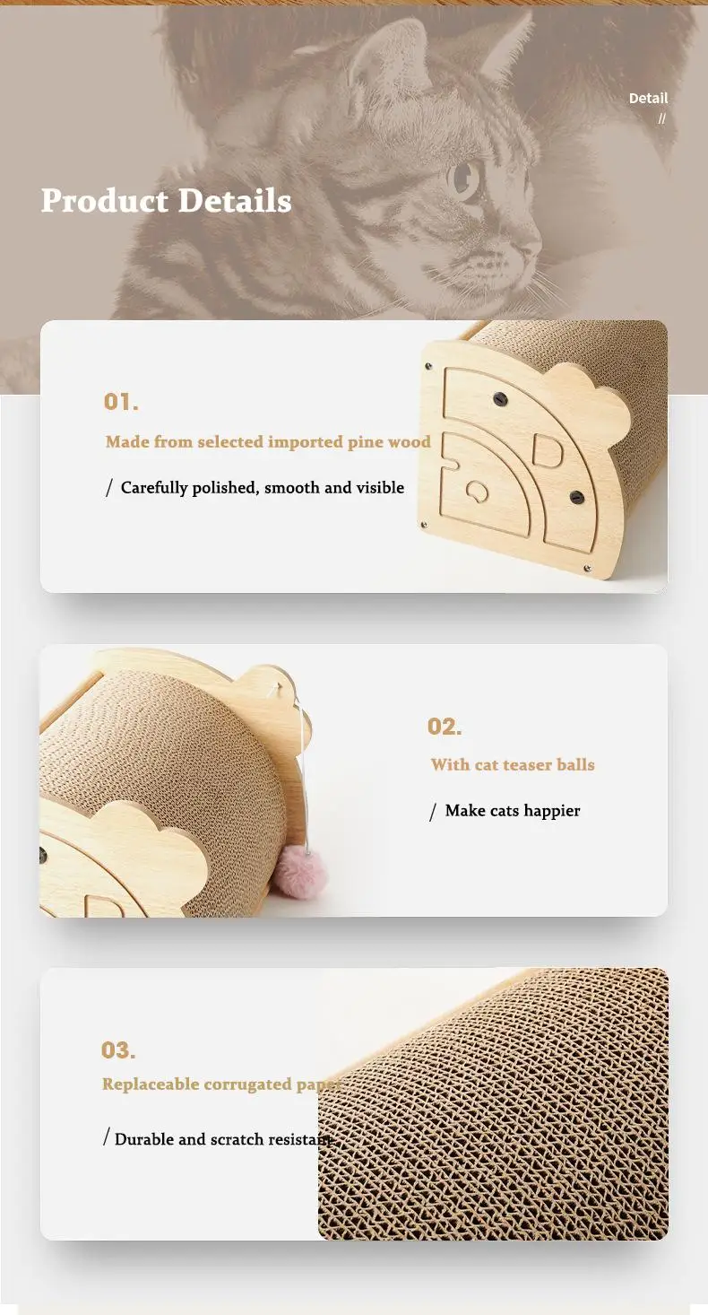 Rascador Vertical de madera para gatos, juguete de papel corrugado, protección de artículos para gatos, sofá, esquina de mesa, esquina