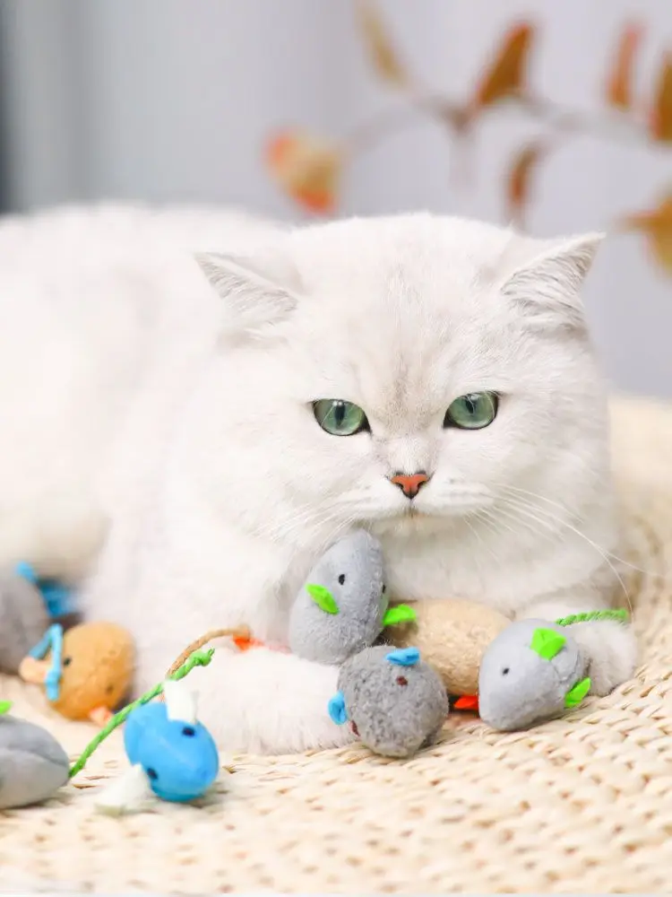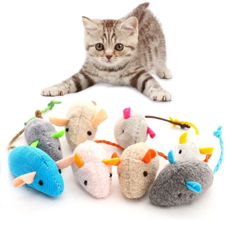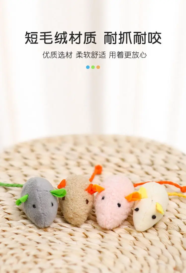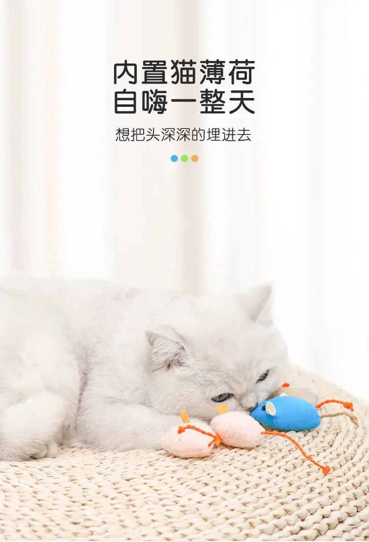 2.Tres ratones de peluche con diferentes colores aportan diversión diferente a los gatos.