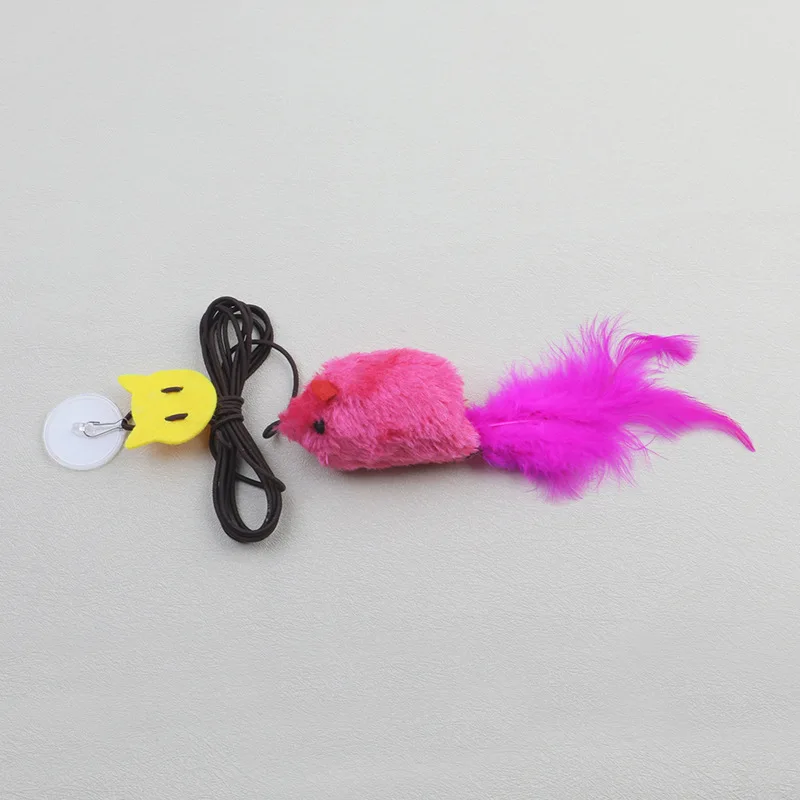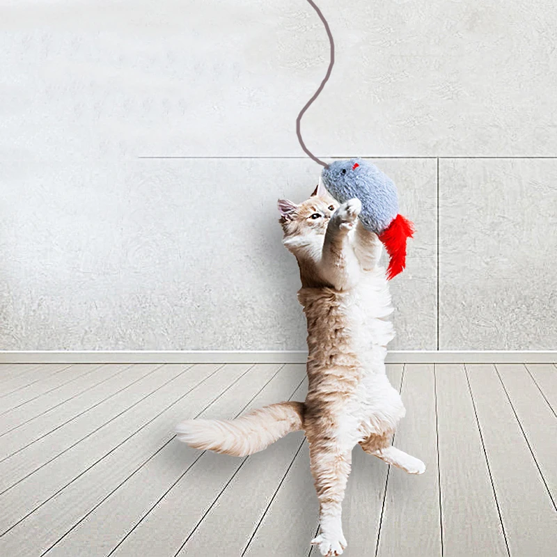Ratón de plumas con sonido colgante, cuerda elástica de simulación, ratón de llamada de felpa, gato, artefacto de autoludeza, juguete para gato
