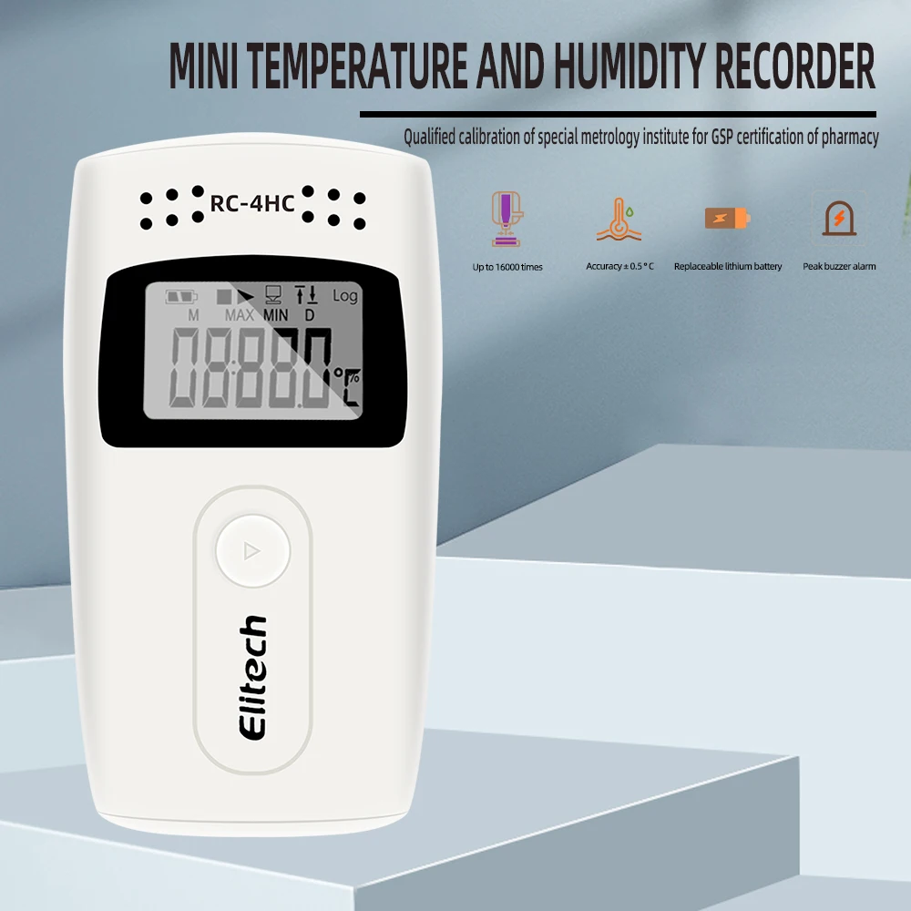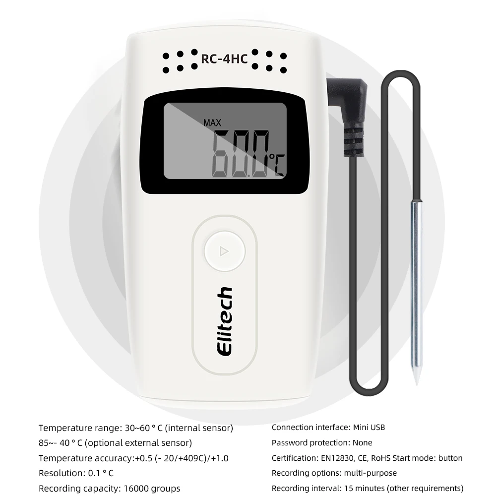 Mini registrador de datos de temperatura RC-4/RC-4HC, registrador USB, capacidad de 16000 puntos, registrador de temperatura en PDF reporter con Sensor NTC
