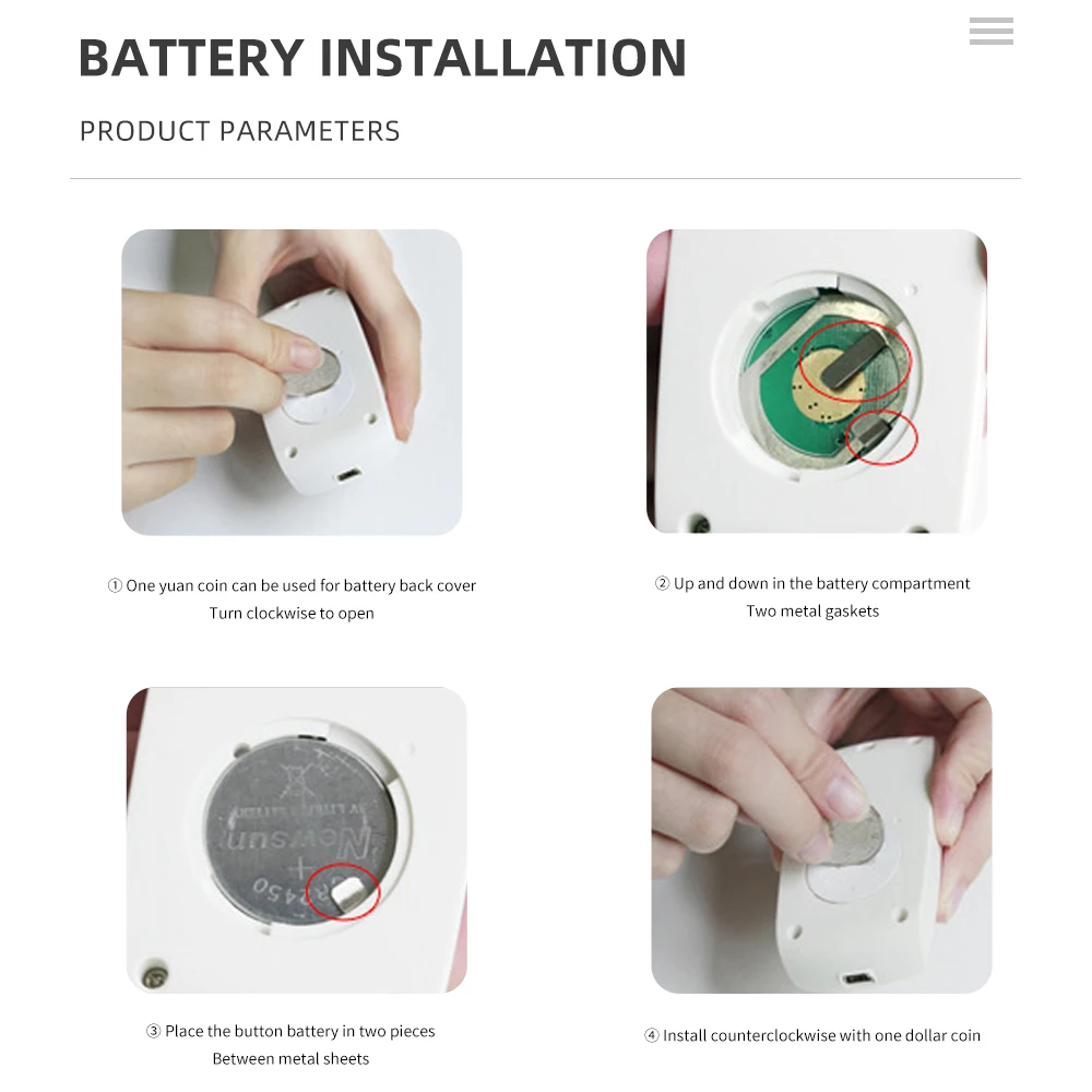 Fuente de alimentación: 1 año ^1/célula de batería CR2450 (no incluida)