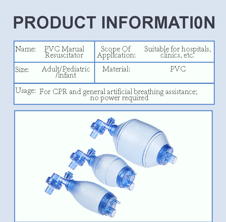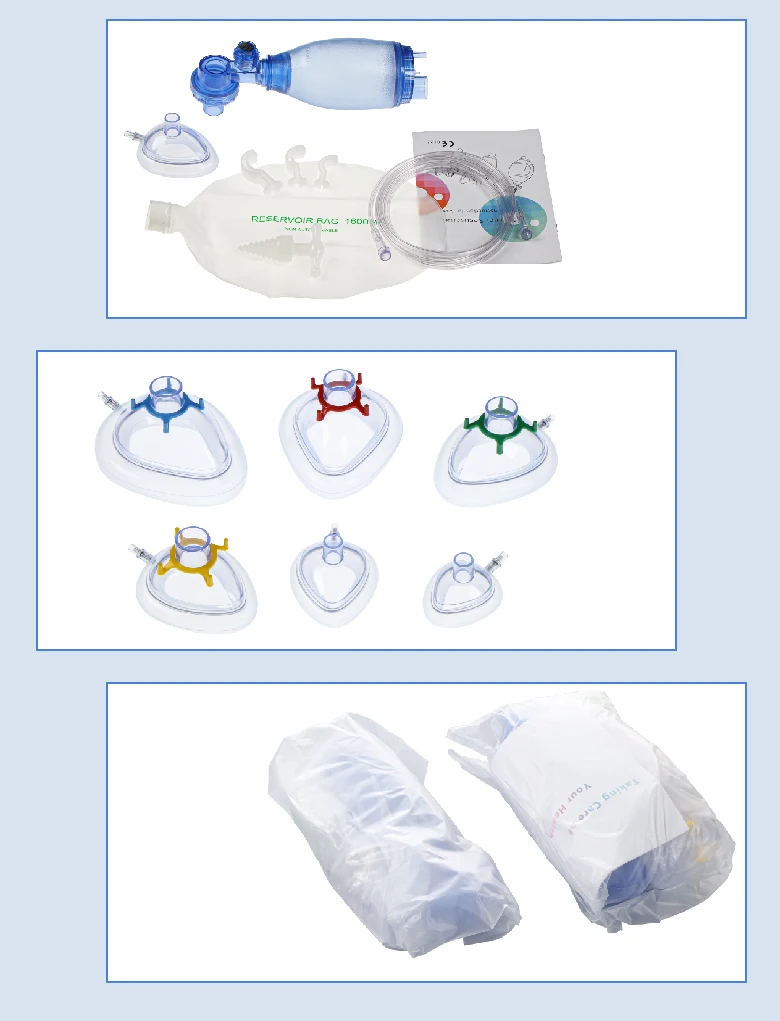 2. Los accesorios incluyen bolsa de respiración, máscara de PVC, tubo de oxígeno, abridor y vías respiratorias.