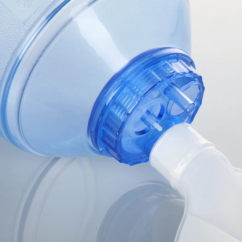 Un extremo de la bolsa se fija a una fuente de oxígeno y el otro extremo a una mascarilla facial o tubo respiratorio.