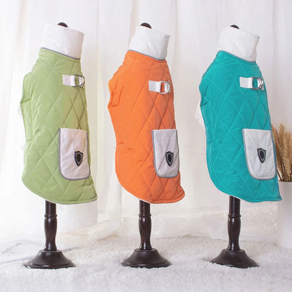 Recién llegado, suéter de lana tricolor para perros con bolsillo para Bichon y Teddy, ropa cálida de otoño e invierno para perros, ropa de algodón