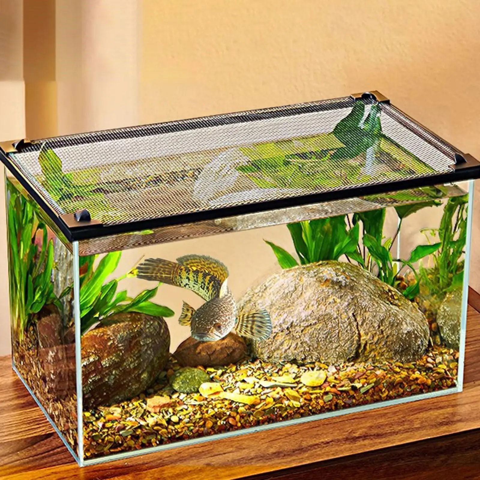 【Fácil de instalar】El kit de bricolaje de red de pantalla de malla antigolpes está diseñado para una fácil instalación, proporcionando un ajuste seguro para su acuario y evita que sus mascotas acuáticas salten.
