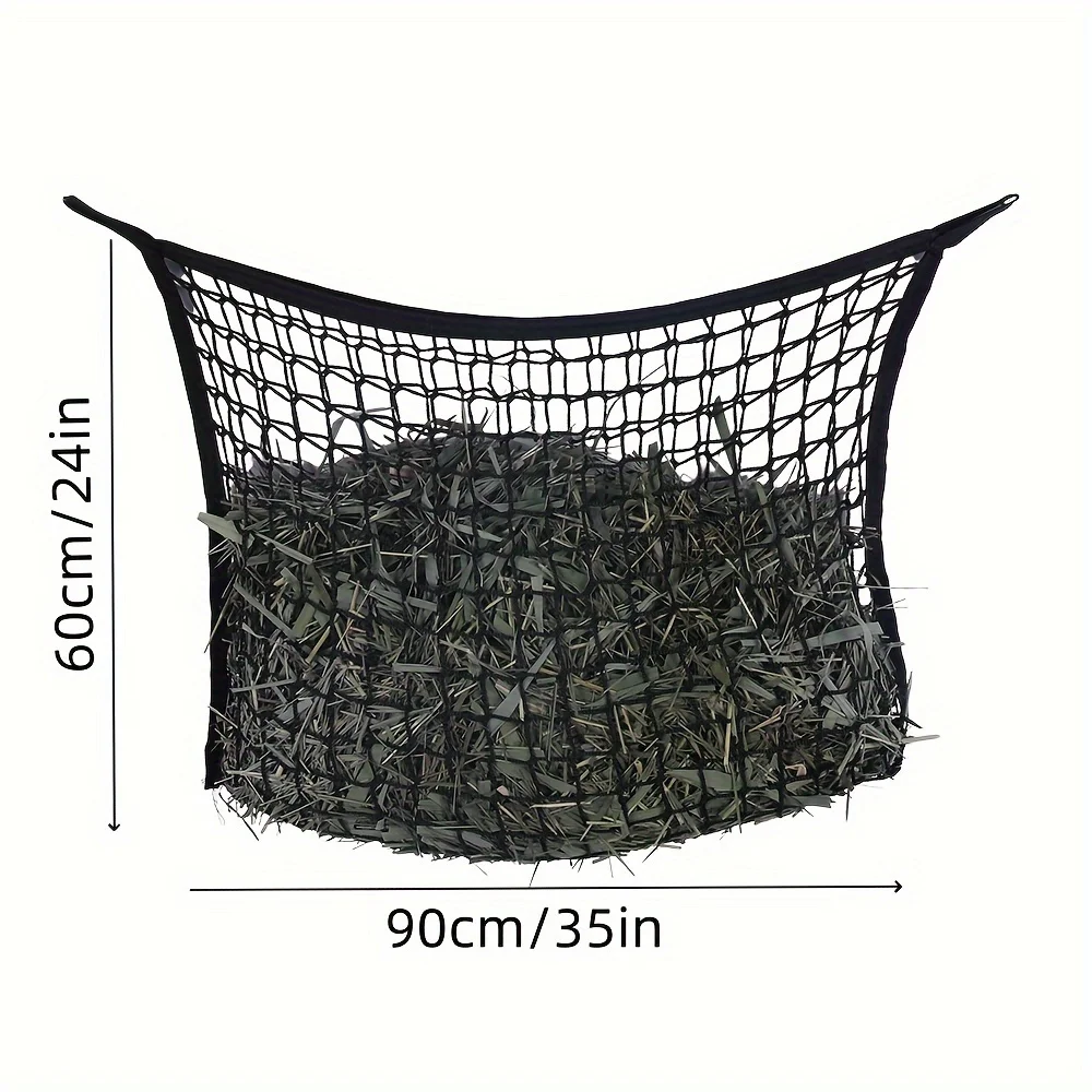Material duradero y de alta calidad: la red de heno está hecha de un nuevo material de nailon de poliéster, que es respetuoso con el medio ambiente, inodoro, resistente al sol, duradero y resistente al desgaste y garantiza un uso a largo plazo.
