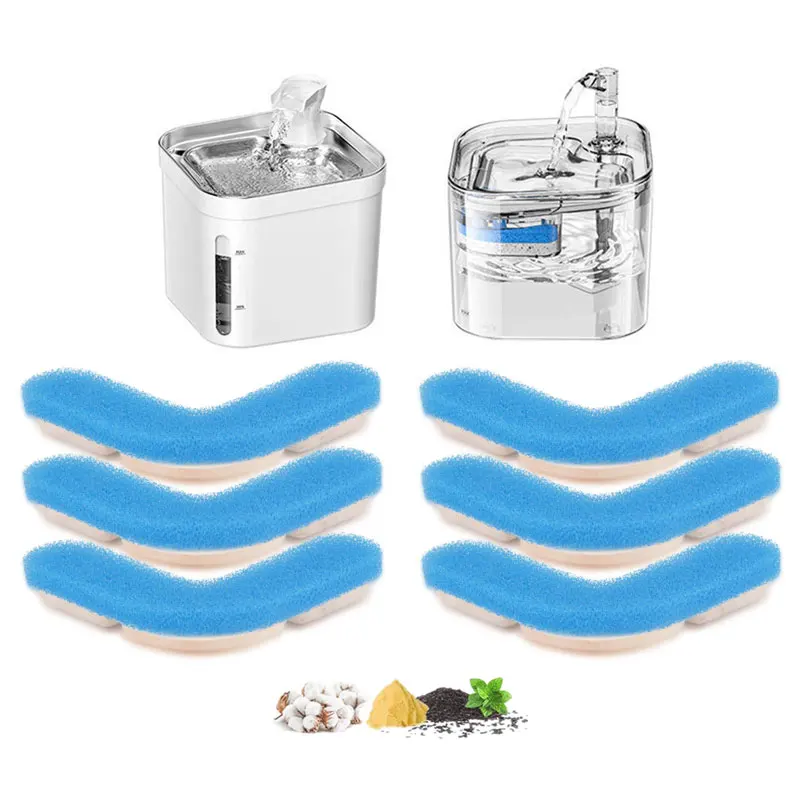[Sistema de filtración cuádruple] Los filtros de fuente de agua HAPUP Pet azules y blancos en forma de L se componen de una esponja prefiltro separada y un filtro de fuente para gatos de calidad alimentaria de triple filtración.Además de la esponja prefiltro para pretectar la bomba y filtrar impurezas, el algodón PP atrapa el pelo y los desechos de los gatos, la capa de resina de intercambio iónico suaviza el agua del grifo y la capa de carbono elimina el mal sabor.El filtro de fuente para gatos puede mantener eficazmente la calidad del agua gracias a las múltiples filtraciones.