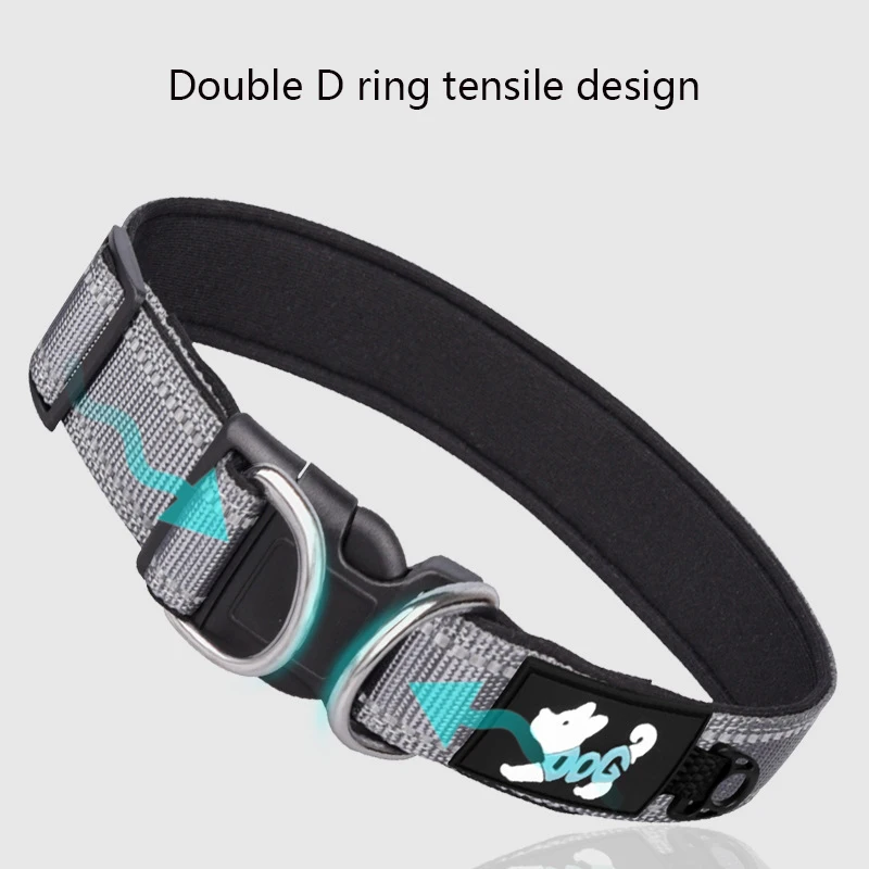 Comodidad durante todo el día:El suave acolchado de neopreno proporciona un forro cómodo que descansa suavemente contra el cuello de su mascota, evitando rozaduras e irritaciones durante todas las actividades.