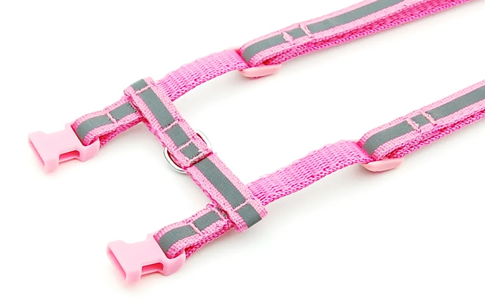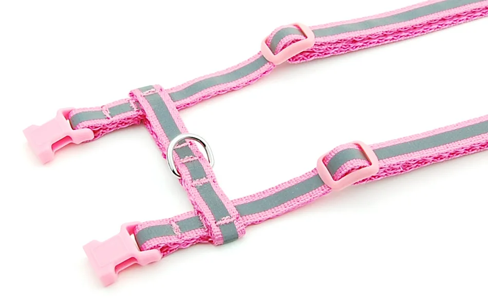 It is divided into two large circles and one small circle. One of the small circles goes around the pet's neckand is fastened with a buckle, and the other is slightly larger and puts on the chest. There is a D buckleon the upper end of the back that can be attached to the strap, which is not easy to loosen, and also allows the little pets to stroll around the owner under comfortable conditions.
