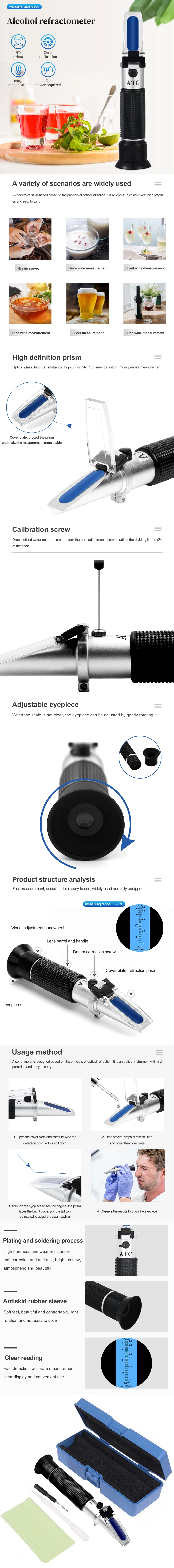 1.Este refractómetro es un modelo especial para destiladores y licores para determinar el contenido de alcohol de destilados sin azúcar.
