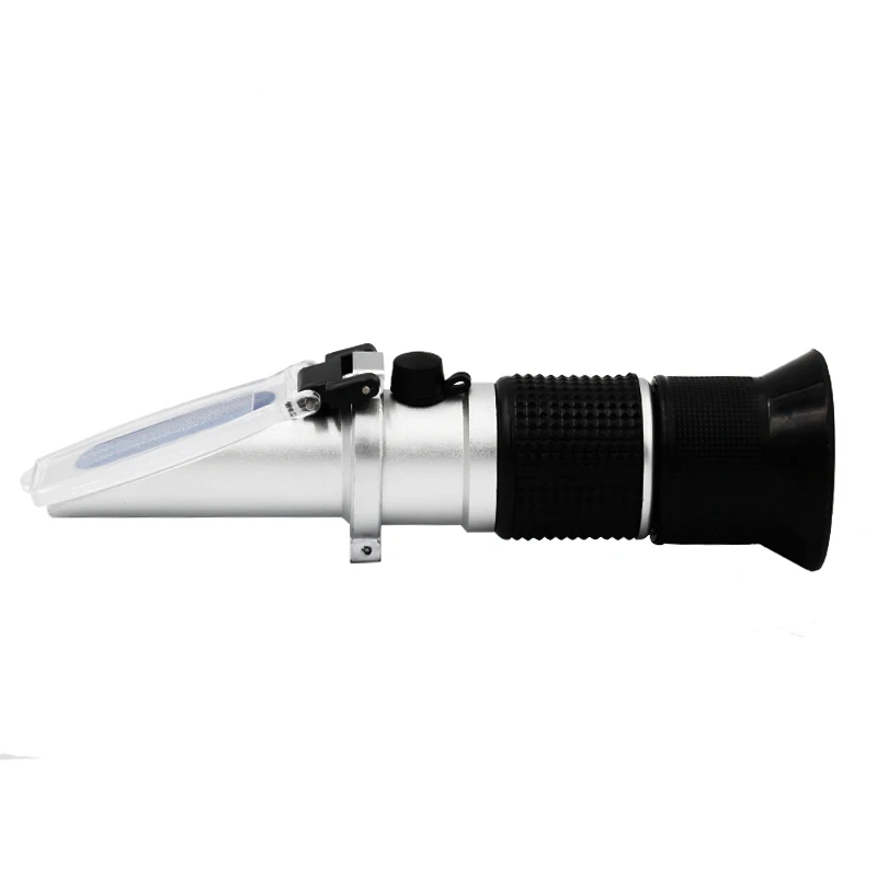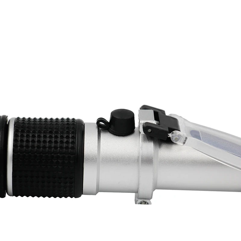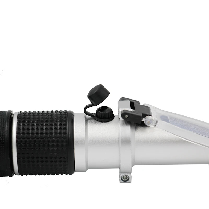 1. Refractómetro portátil, utilizado para medir la densidad de los azúcares en la solución, el rango de la escala Brix es de 0 a 90%.