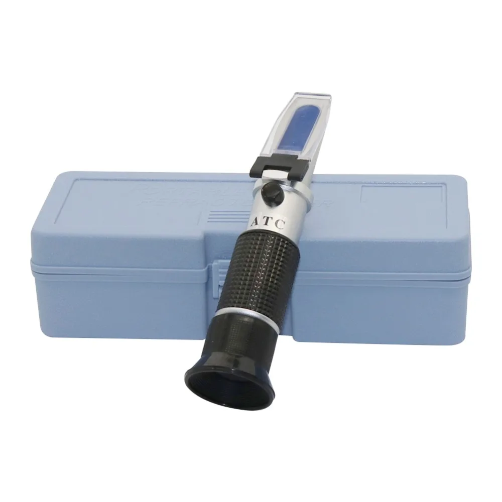 Nombre: refractómetro/refractómetro portátil de concentración de leche 0 ~ 20%Material: aleación de aluminio y cromo de cobreRango de medición: 0-20% lecheDivisión mínima: 0.2% lecheDimensión (mm): 4x15,5 cmRango de compensación ATC: 10 °C ~ 30 °C (50 °F ~ 86 °F)Paquete: 1 JuegoUso principalEste tipo de refractómetro es un refractómetro automático de detección de azúcar compensada por temperatura, que se utiliza principalmente para determinar la concentración de leche.El modelo verifica si la leche se añade con agua, sin desnatar la leche. A través del coeficiente de corrección al sistema óptico, se puede eliminar la vaguedad causada por la crema y verificar los resultados directamente de la leche. Fácil de operar y precisión.Métodos de medición1. Alinee el prisma refractante con la dirección de la luz y ajuste el anillo de visibilidad del ocular hasta que la retícula sea clara.2. Ajuste el punto de referencia: antes de la medición, primero haga la solución estándar (agua pura), el instrumento y la solución de prueba en función de la misma temperatura. Abra la cubierta y luego tome 1 ~ 2 gotas de gotas estándar en el prisma dióptrico, y presione suavemente la cubierta con la mano para obtener una línea divisoria clara y oscura. Gire el perno de calibración para que la línea de límite clara/oscura en el campo de visión del ocular coincida con la base (0%)3. Medición: Abra la cubierta y limpie la superficie del prisma con una franela suave. Tomar de 1 a 2 gotas de la solución a medir en el prisma dicroico. Cierra la cubierta y presiona suavemente para leer la escala relativa de la línea divisoria azul-blanca. Es decir, la concentración del líquido medido.4. Después de completar la medición, limpie los accesorios en la superficie del prisma y la cubierta directamente con un paño de terciopelo húmedo. Después del secado, guárdelo correctamente.Precauciones1. Por favor lee las instrucciones cuidadosamente antes de usarla.2. Después del uso, está prohibido lavar directamente con agua del grifo para evitar agua en el sistema óptico.3 en el uso y mantenimiento debe tomarse ligera y suavemente, no debe aflojar las partes de conexión del instrumento, no caídas, colisiones, el instrumento debe mantenerse cuidadosamente, la superficie de las piezas ópticas no debe tocar flores ni flores.4. El instrumento debe guardarse en una atmósfera seca, libre de polvo y no corrosiva para evitar el moho en la superficie de las partes ópticas.