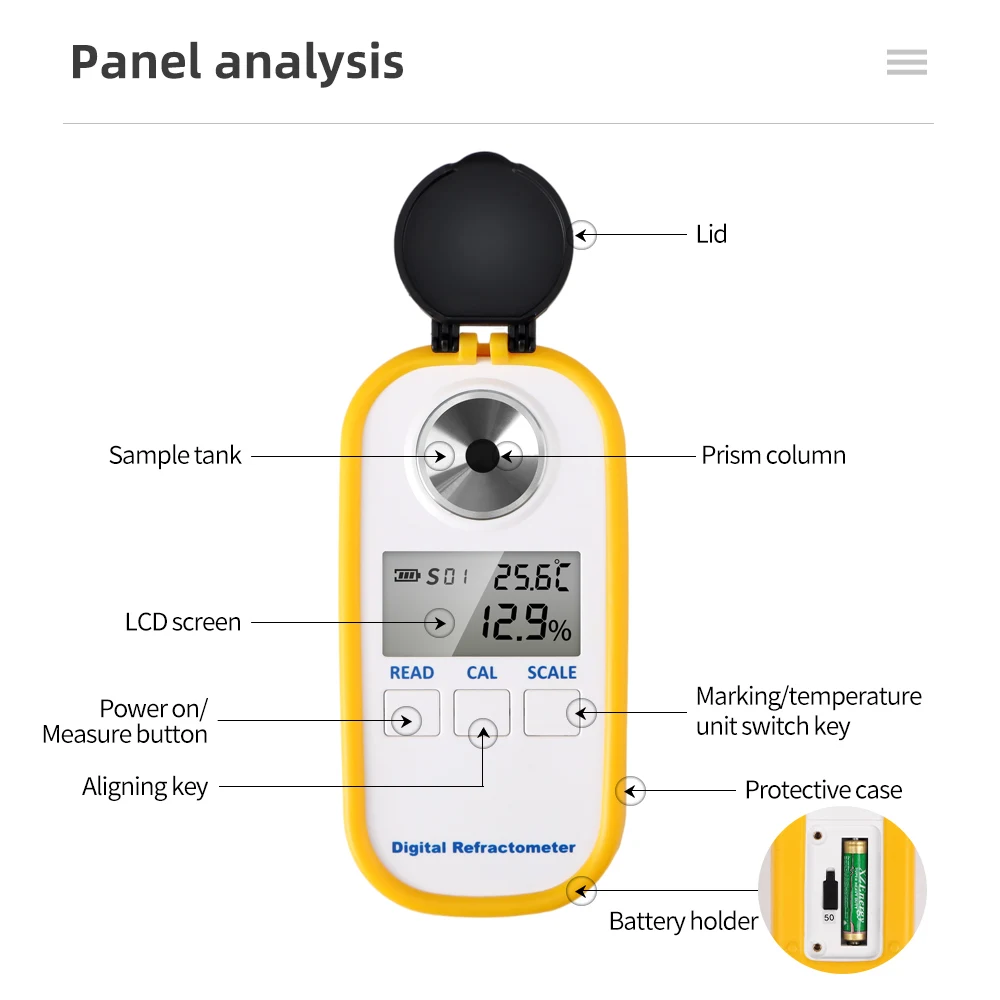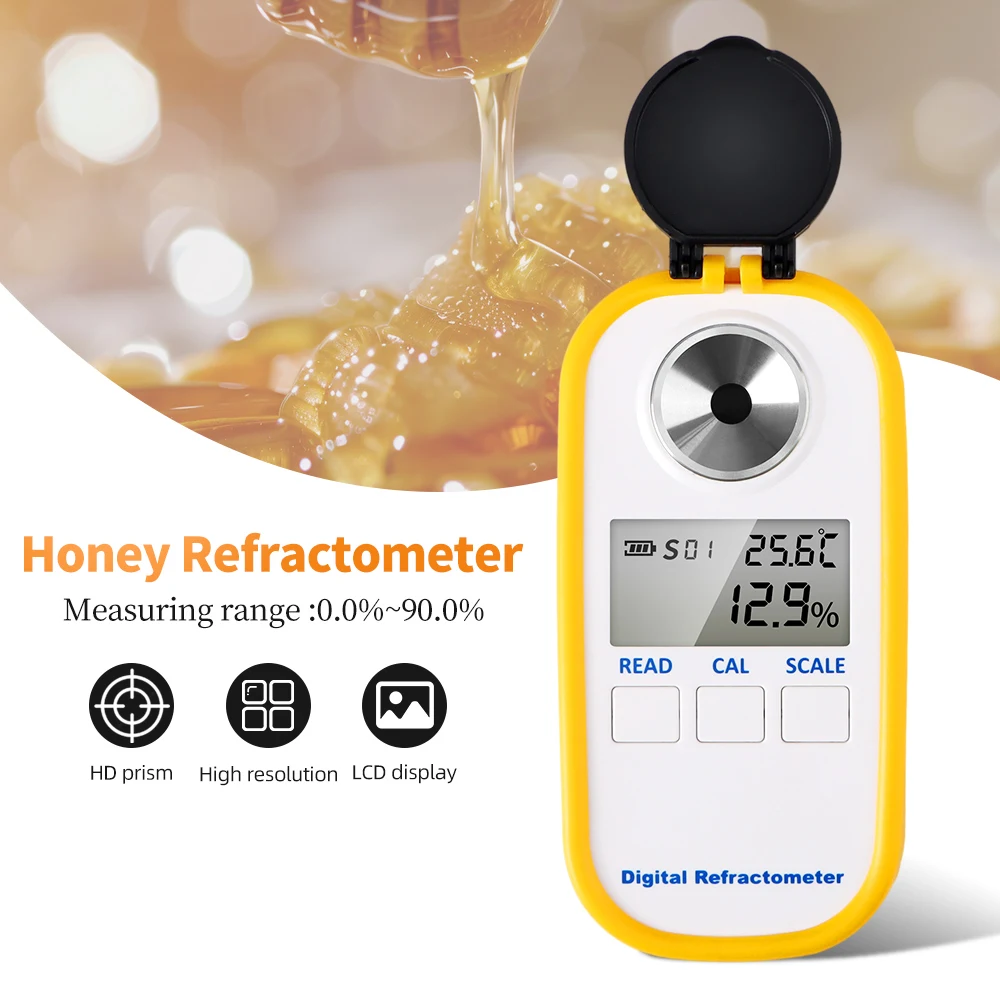 0,0-90,0% refractómetro de miel, LCD, probador Digital Brix, medidor de refracto ATC, medidor de contenido de azúcar, analizador de índice de refracción con caja