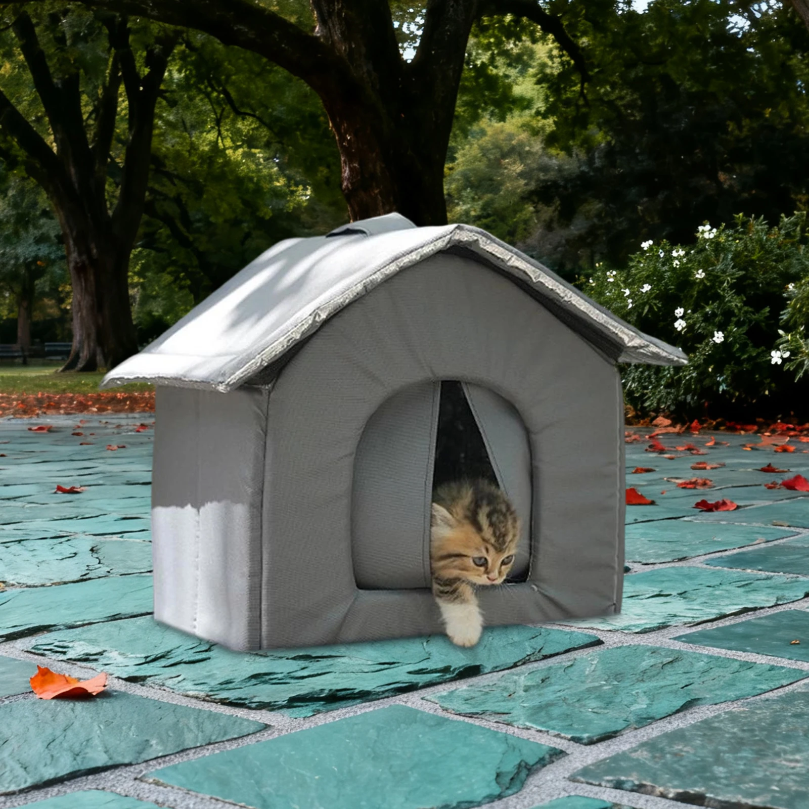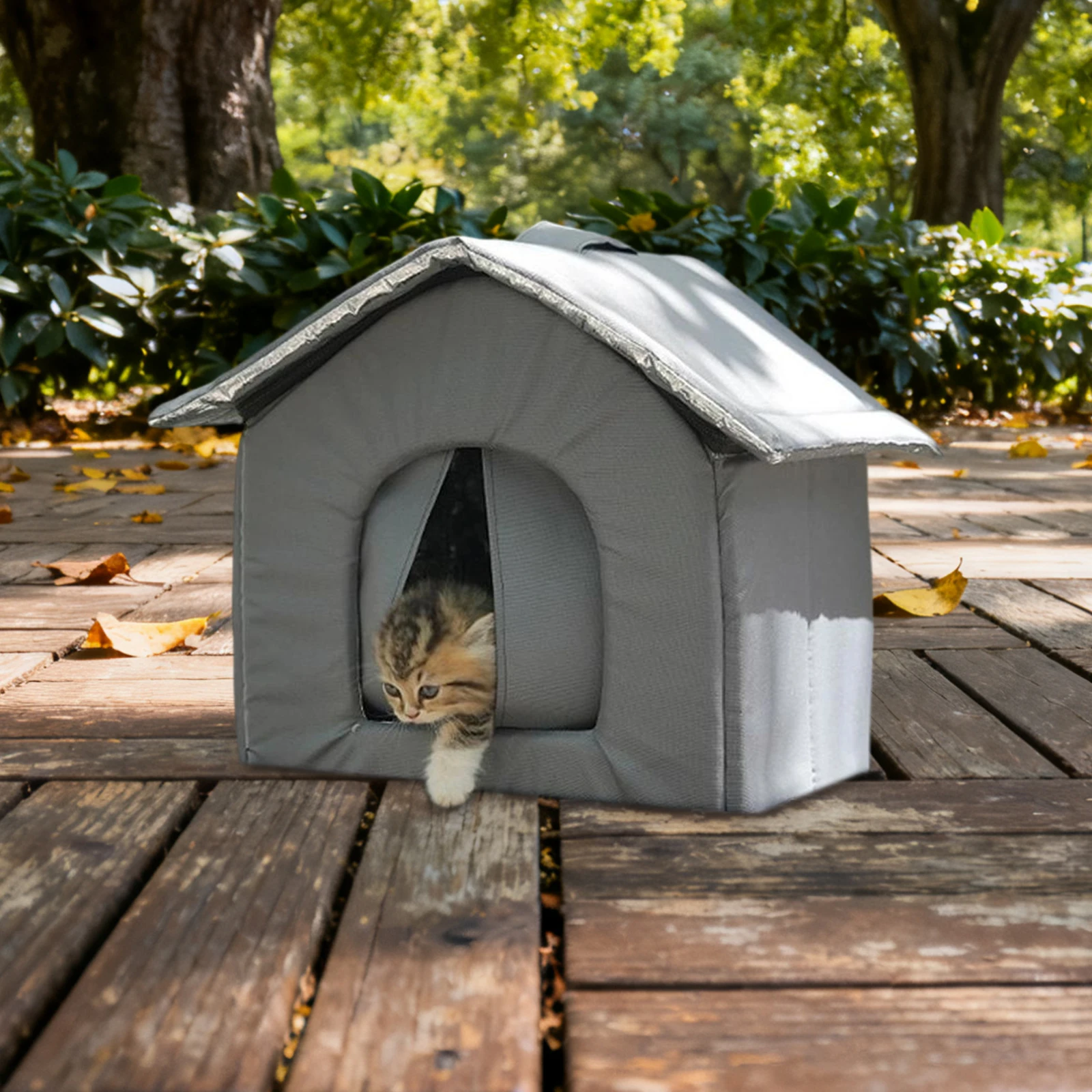 Material: Stray Cats Shelter está hecho de tela Oxford, resistente y interior cálido. La estructura externa impermeable permite colocarlo afuera, brindando a los gatos salvajes un hogar cálido.