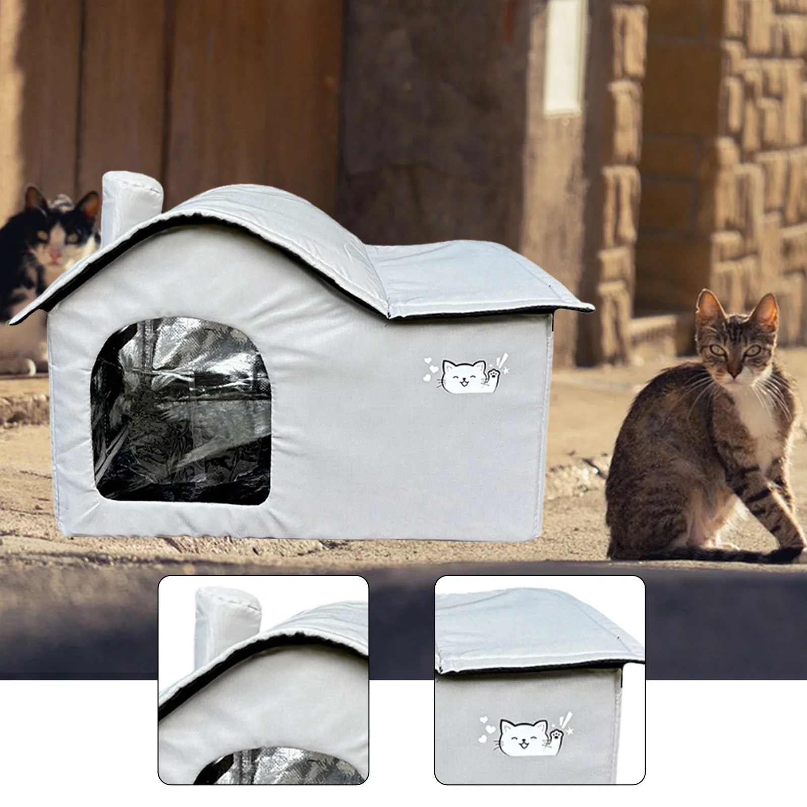 Material: Stray Cats Shelter está hecho de tela Oxford, algodón perlado, papel de aluminio, resistente y cálido por dentro. La estructura externa impermeable permite colocarlo afuera, brindando a los gatos salvajes un hogar cálido.