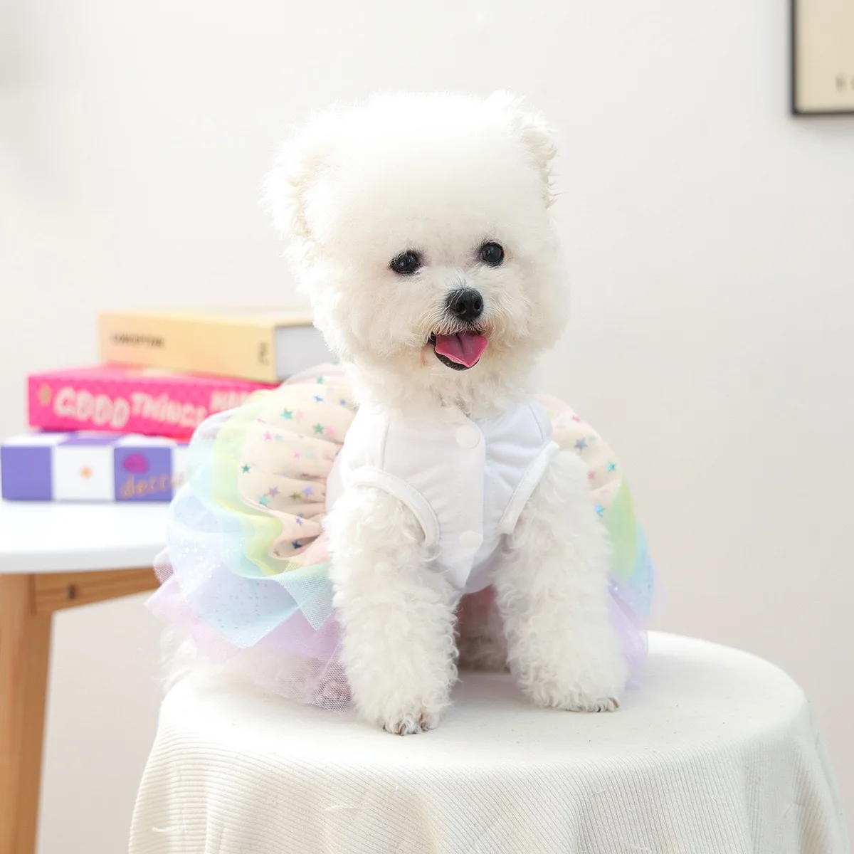 Regalo de cumpleaños, velos en capas, vestidos para niñas para Bulldog Francés, ropa dulce para perros pequeños para todas las estaciones, faldas sin mangas con lentejuelas para gatos