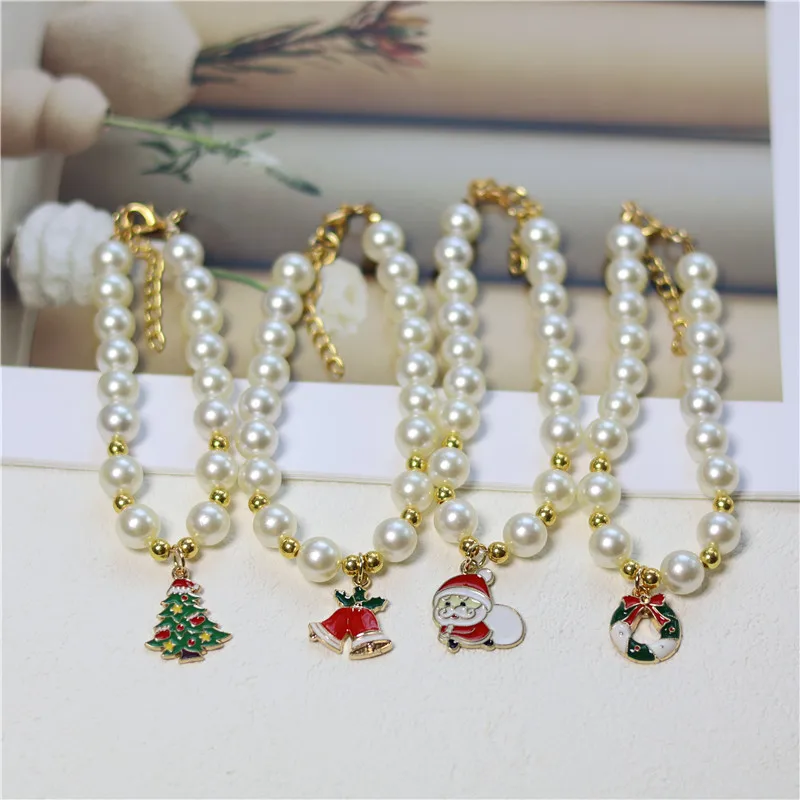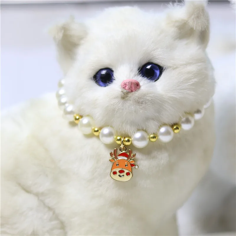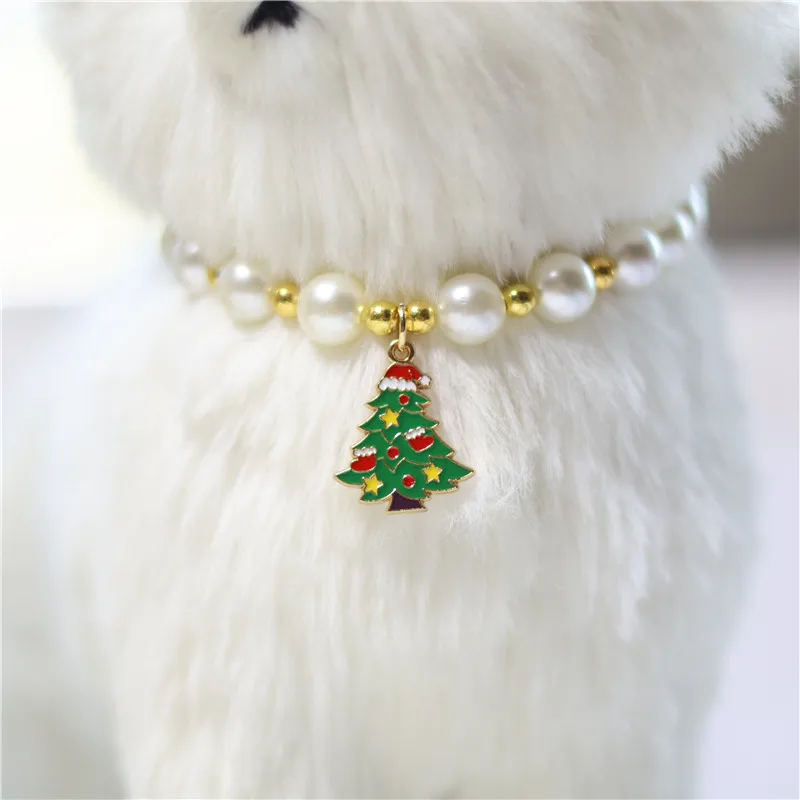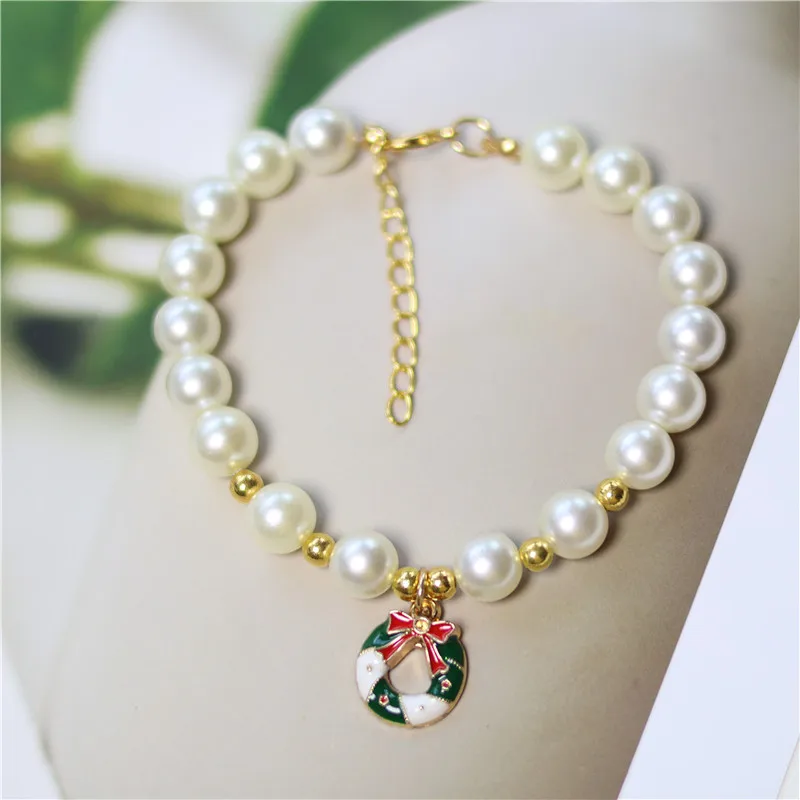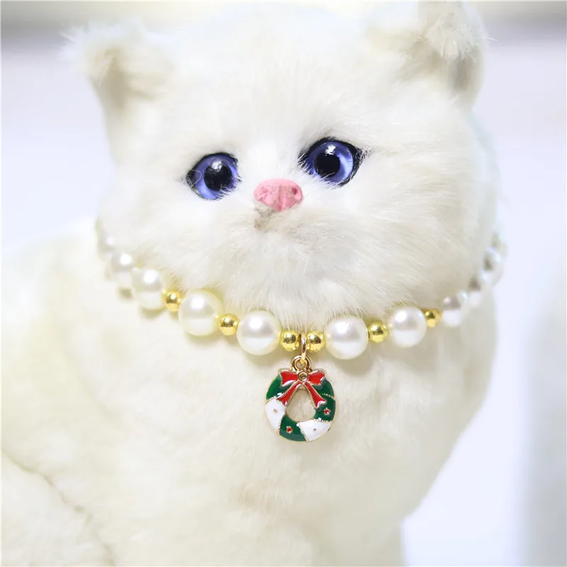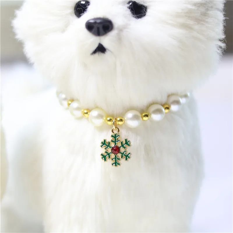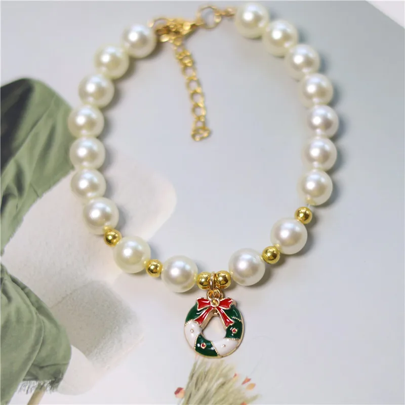 Regalo de perlas para mascotas, corona navideña, cadena para perros y gatos, Collar para mascotas, Collar para perros y gatos, juguete de peluche, cadena para el cuello para mascotas