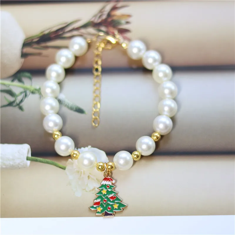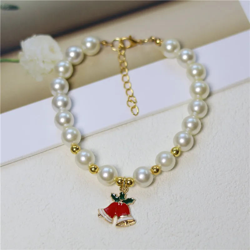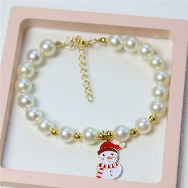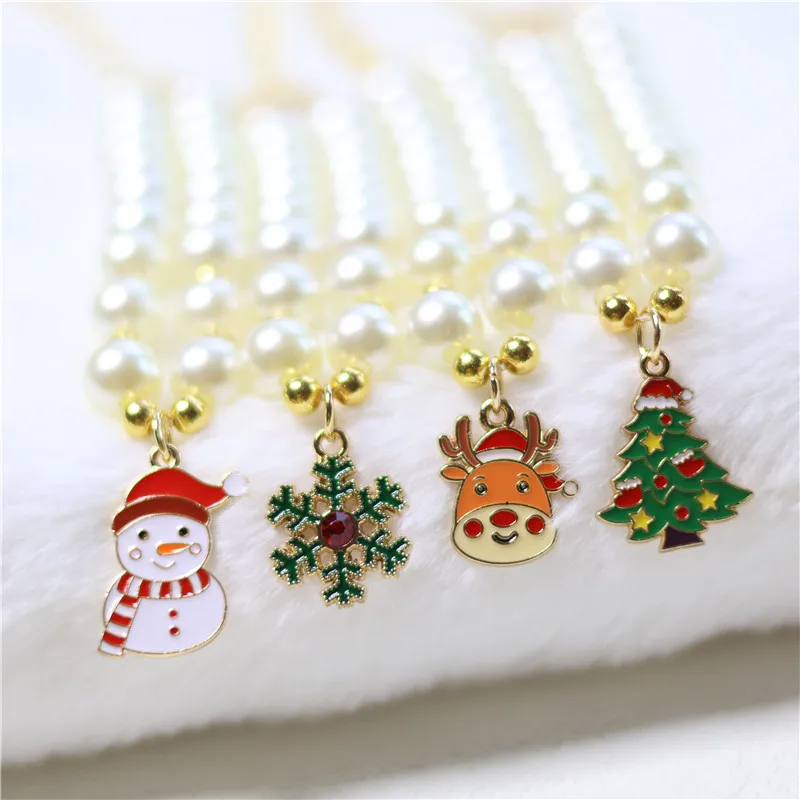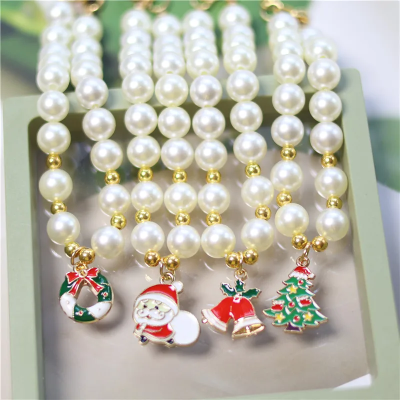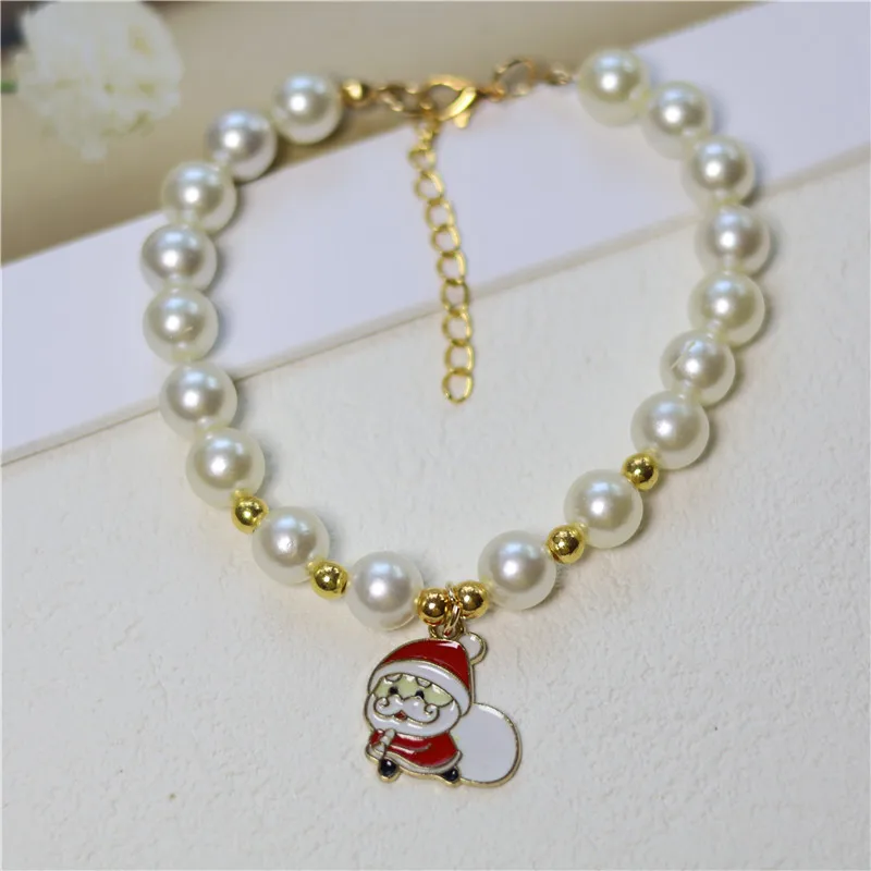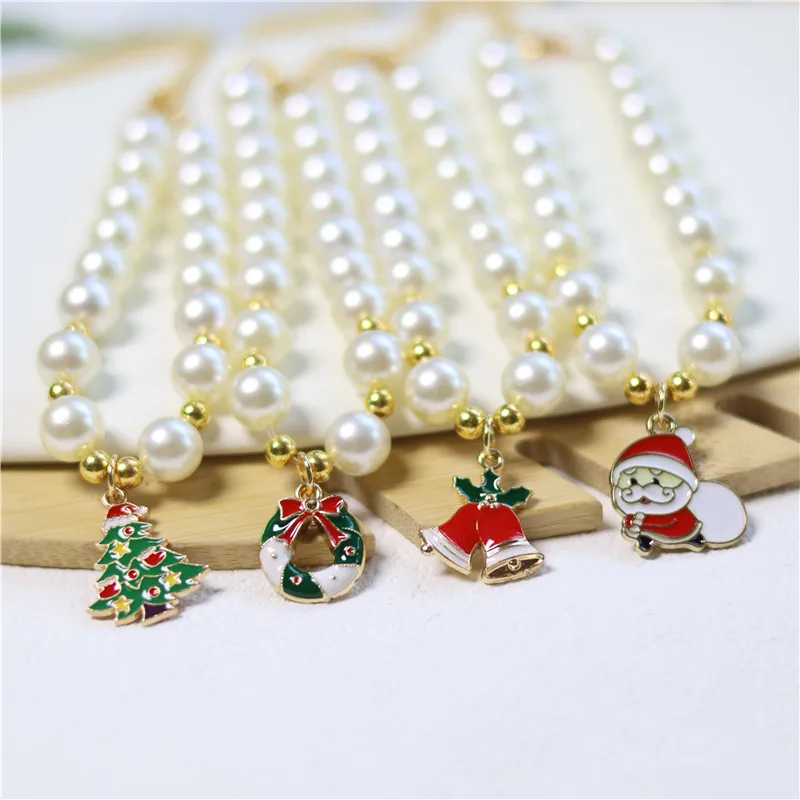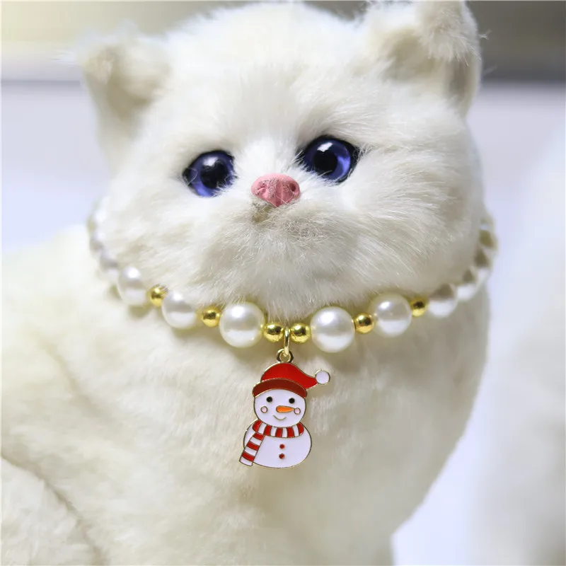 Regalo de perlas para mascotas, corona navideña, cadena para perros y gatos, Collar para mascotas, Collar para perros y gatos, juguete de peluche, cadena para el cuello para mascotas