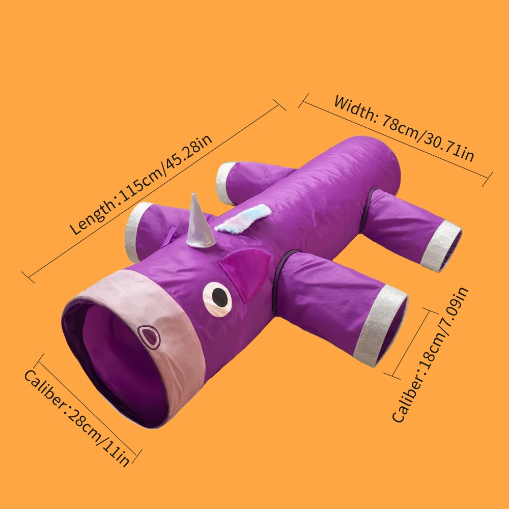 Diseño mágico de unicornio: este gran túnel plegable para mascotas presenta un caprichoso diseño de unicornio, lo que hace que el tiempo de juego sea mágico para su gato o perro.Sus colores vibrantes y detalles intrincados añaden un toque de diversión y encanto al área de juegos de su mascota.