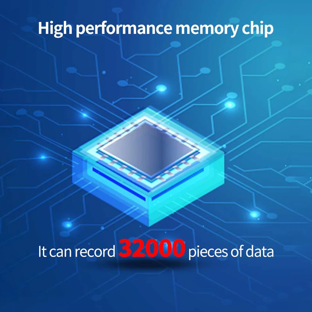 6.Puede almacenar 32000 datos de temperatura y humedad (cuando el espacio de almacenamiento es