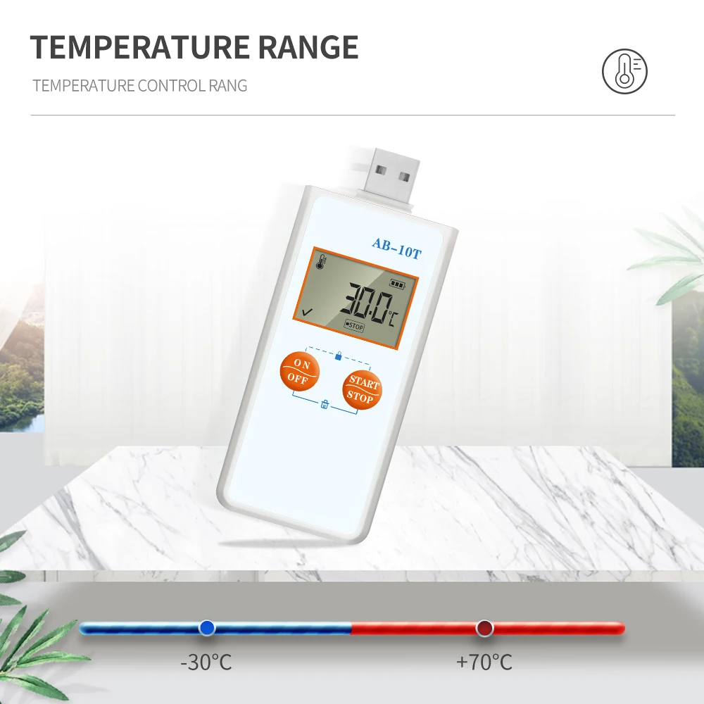 AB-10Tes un mini registrador de datos de temperatura USB resistente al agua de alta precisión, conectado a una computadora, los datos se pueden cargar y exportar automáticamente a informes en formato TXT, con almacenamiento de datos 48000, puede borrar todos los datos, uso repetido, intervalo de grabación ajustable, puede medir -20℃-/+40℃, adecuado para transporte refrigerado de alimentos, medicinas, productos farmacéuticos en cadena de frío, monitoreo de temperatura de vacunas, suministros químicos y otros productos en el almacenamiento y transporte de múltiples mediciones y registros de temperatura.