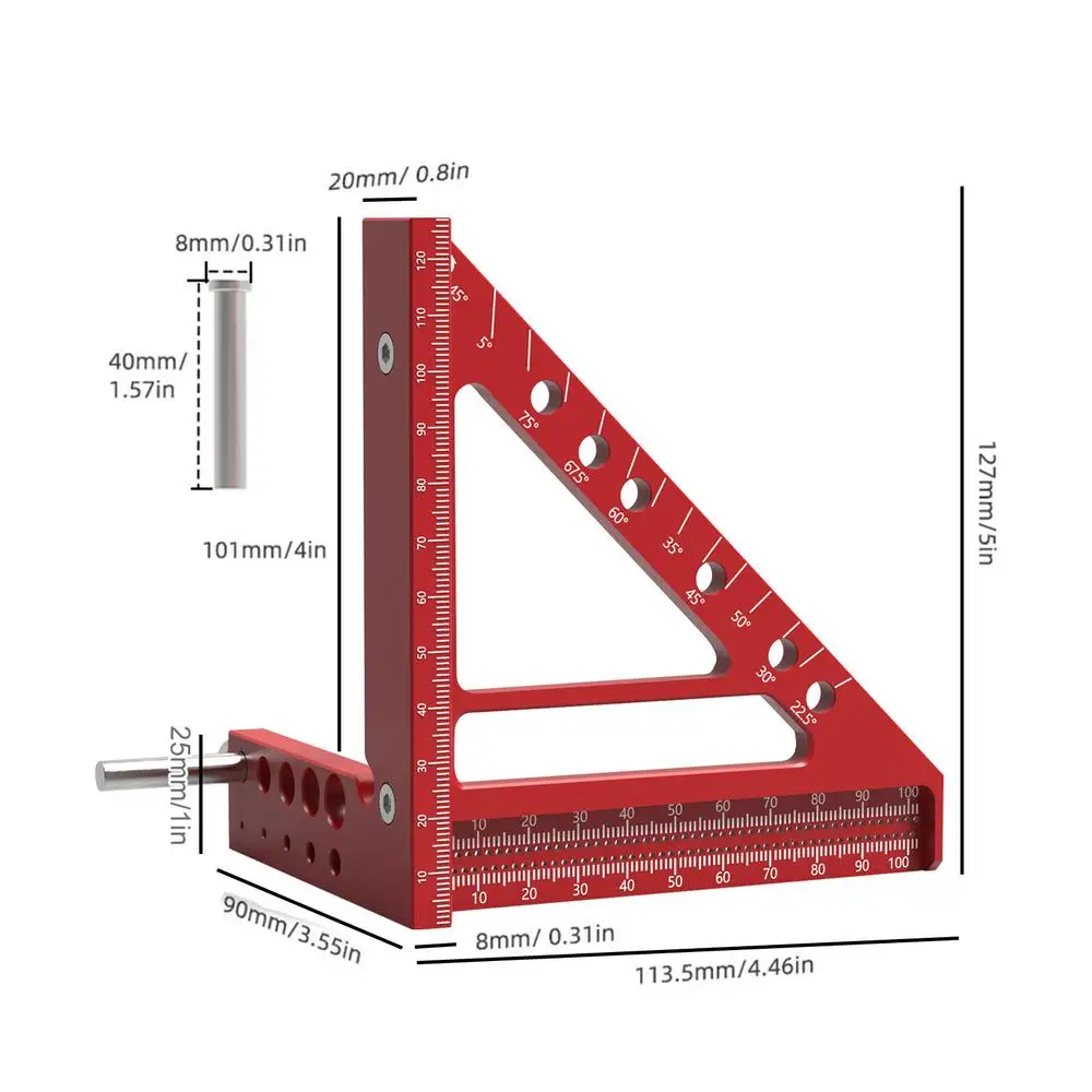 5.Uso múltiple: como carpintero, ingeniero o decorador, necesita una herramienta práctica para garantizar un trazado preciso y un marcado de agujeros. Nuestra regla para trazar agujeros cuadrados de carpintero es perfecta para cualquier proyecto que requiera niveles profesionales de precisión.