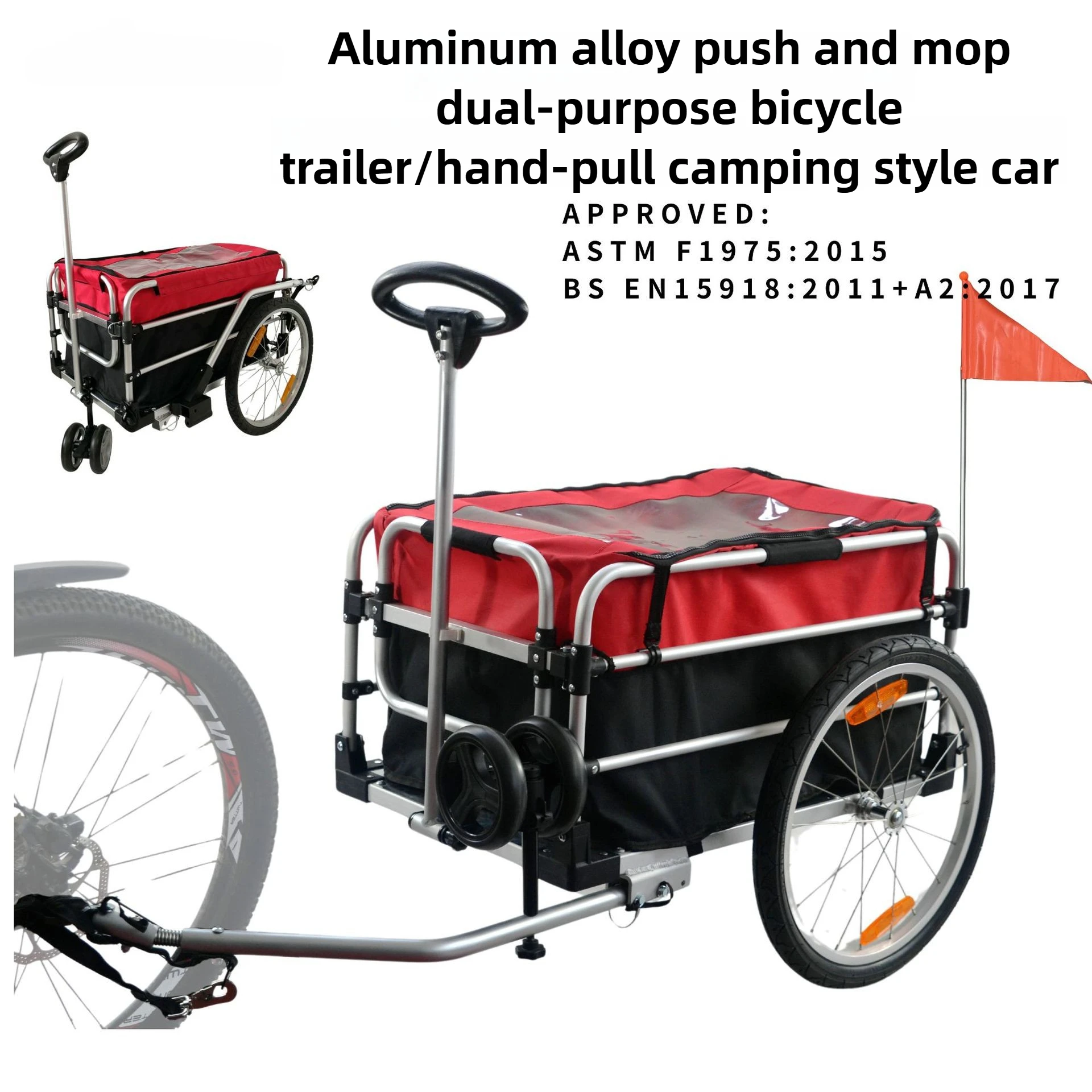 Remolque de bicicleta de carga para mascotas mediano y grande, carrito tirado a mano, remolque de bicicleta de viaje al aire libre dos en uno, multifunción