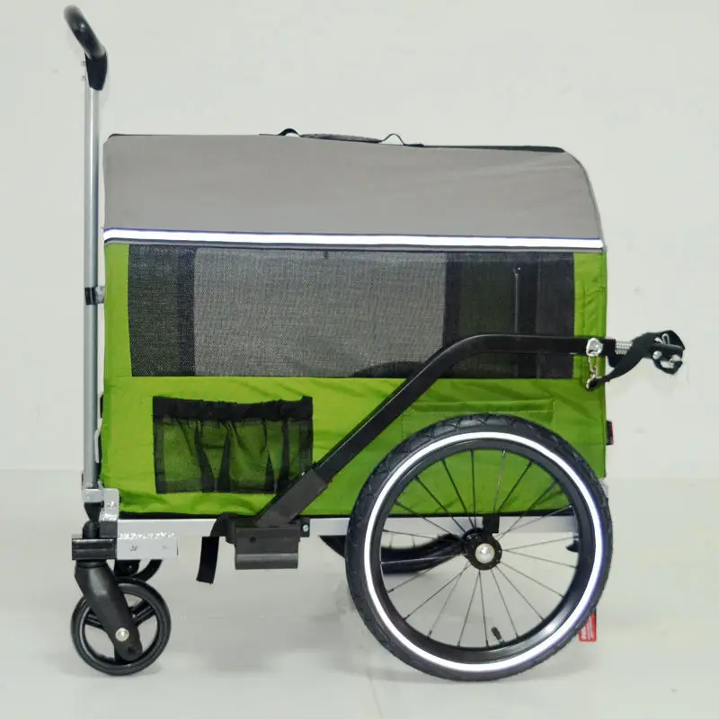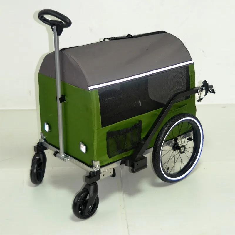 Remolque de bicicleta para mascotas de tamaño pequeño y mediano, carrito para perros, remolque para montar, equipo de viaje al aire libre, cochecito para perros plegable y desmontable