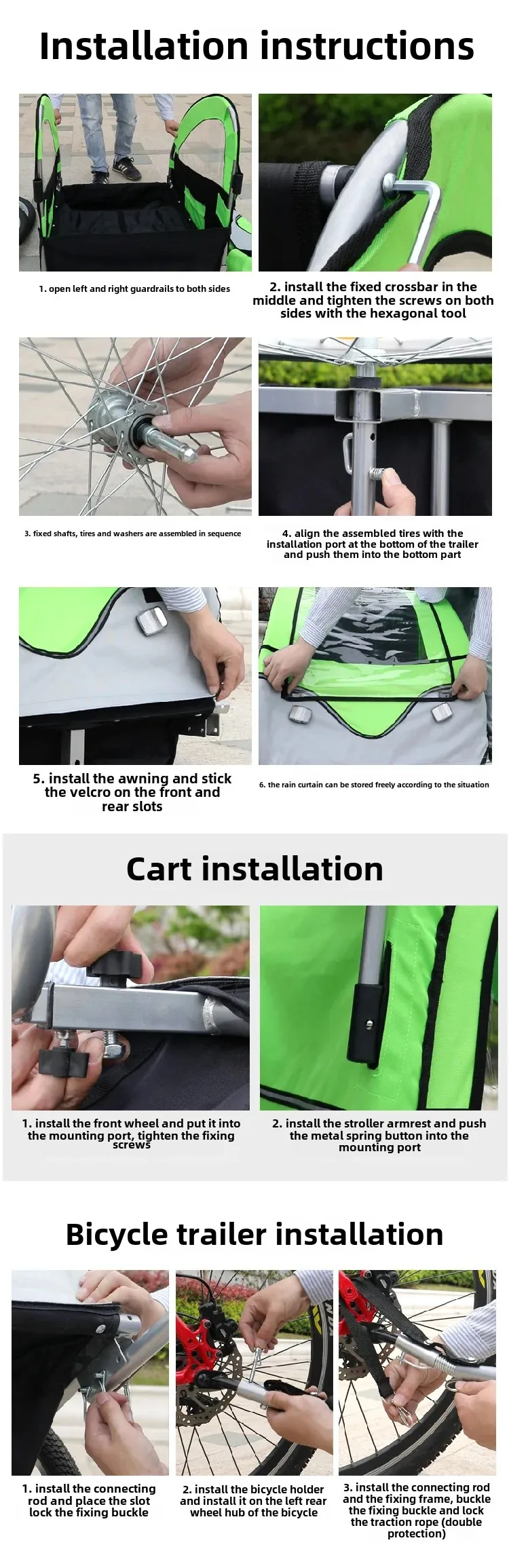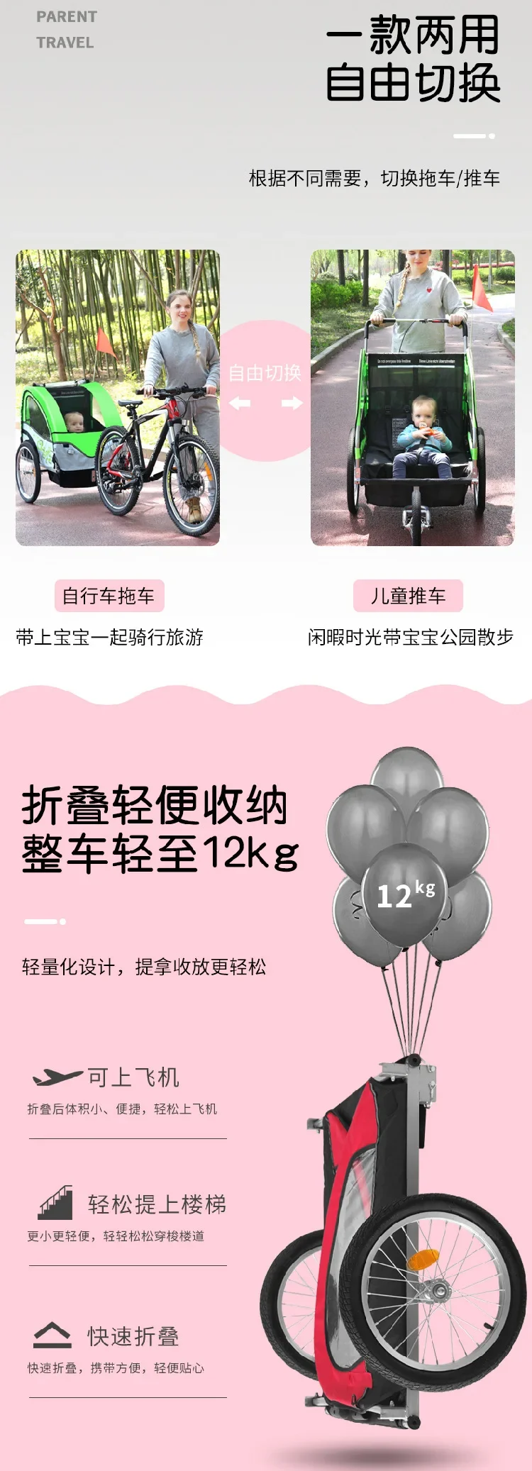 Remolque de bicicleta multifuncional para padres e hijos, carrito plegable para mascotas, para salir, portátil