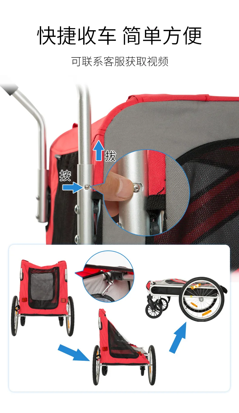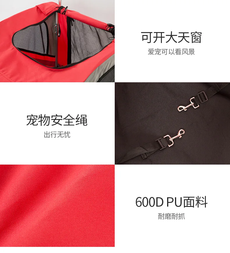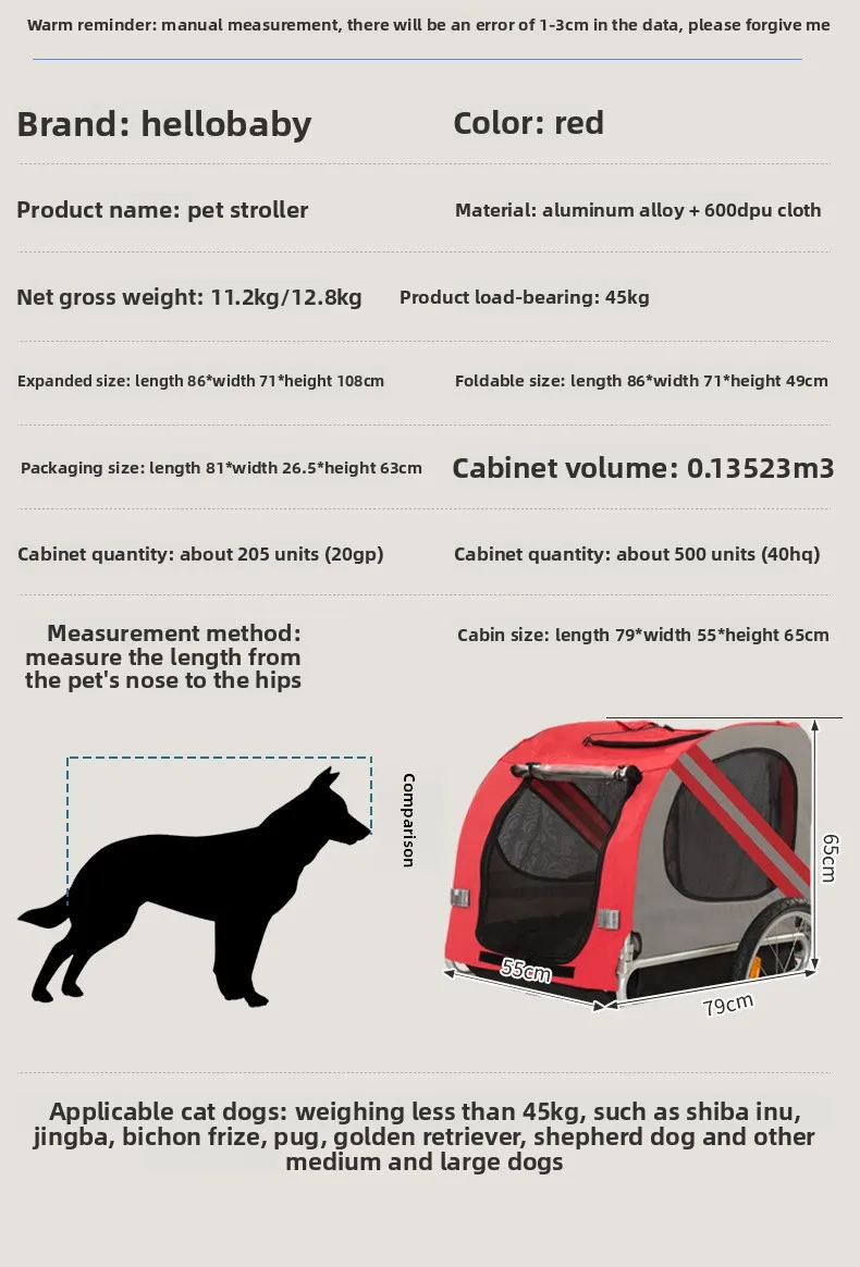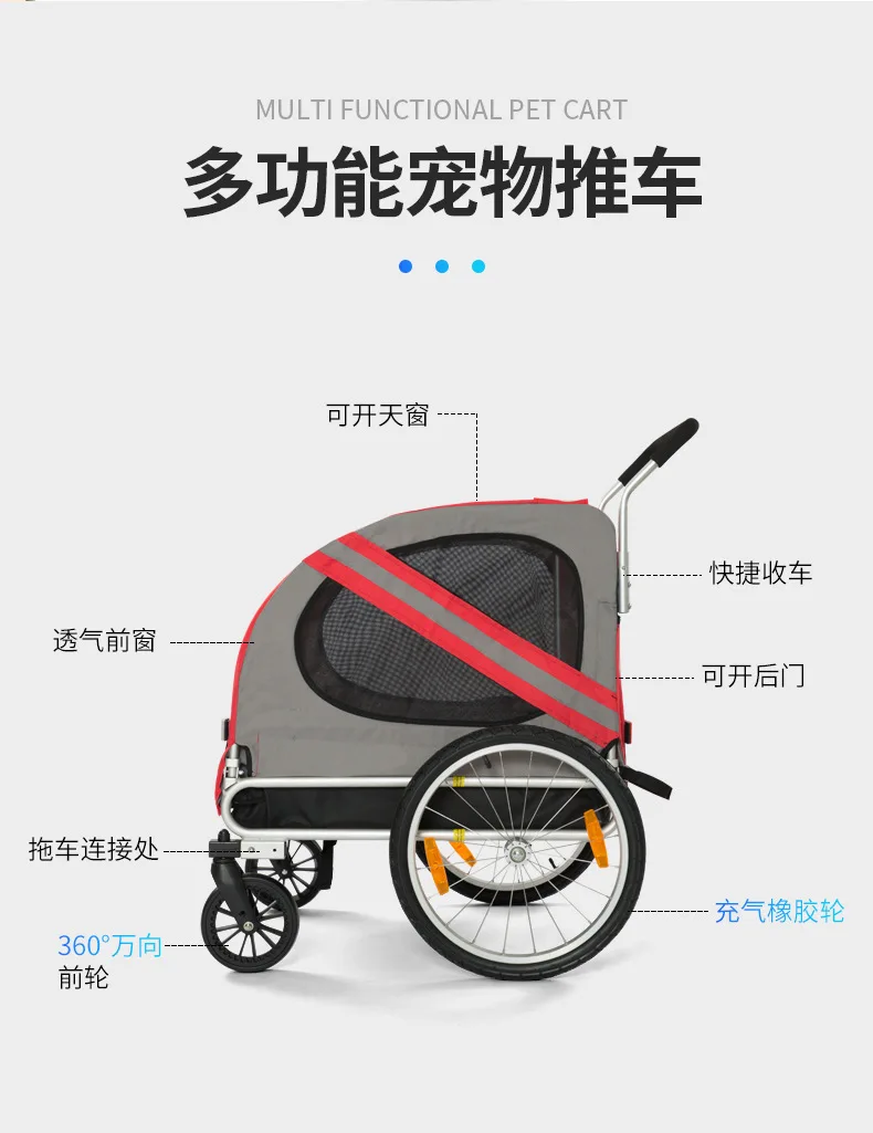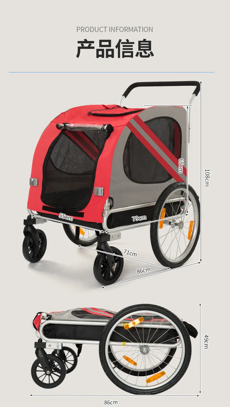 Remolque de bicicleta para perros medianos y grandes, cochecitos para mascotas de gran espacio, conducción al aire libre, suministros para remolques de perros y gatos