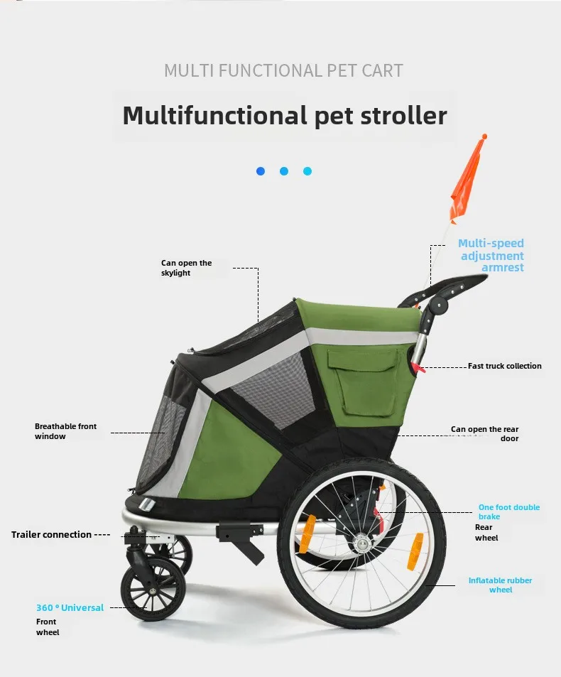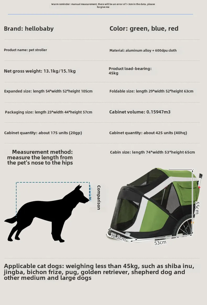 Remolque para mascotas para conducción al aire libre, carrito para mascotas de gran espacio, carrito para perros y gatos, se puede conectar a un carrito de bicicleta para cochecito de perros y gatos