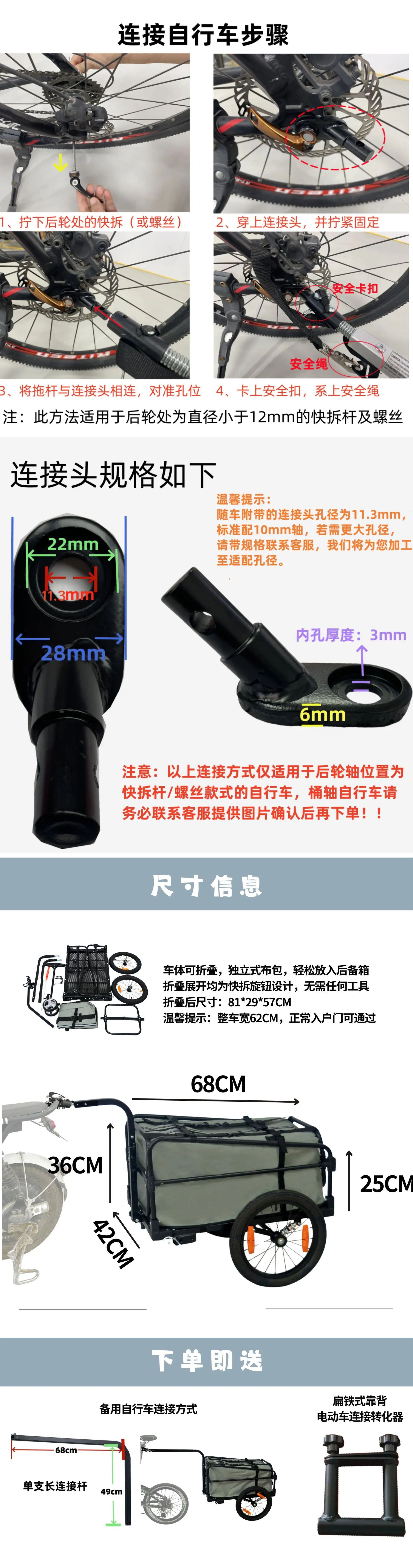 Remolque para mascotas, vehículo eléctrico de aleación de aluminio, remolque de bicicleta, camión de tracción manual, camión plegable de carga para viajes al aire libre tres en uno