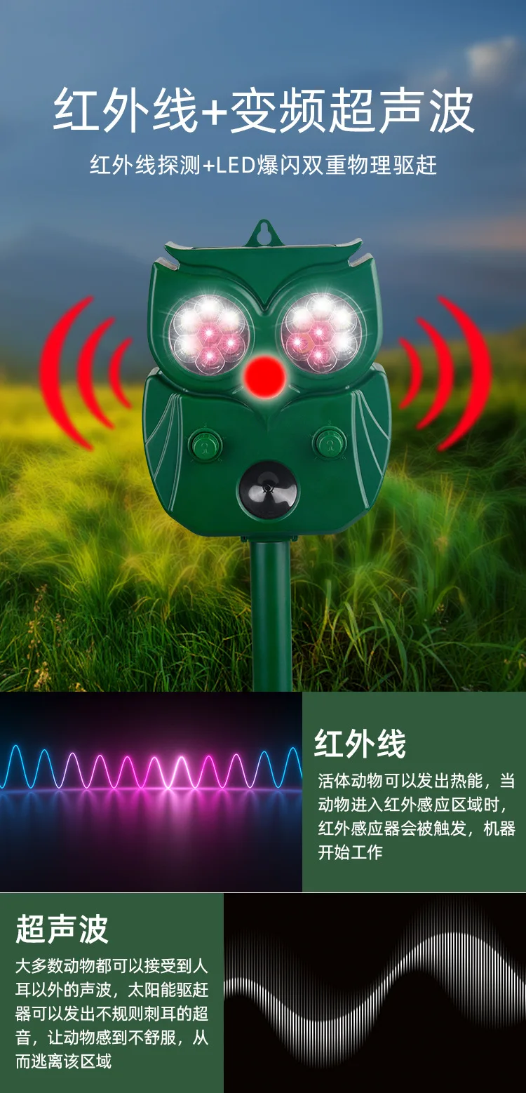 Repelente Solar de animales, repelente de ratones ultrasónico electrónico de alta potencia, conversión de frecuencia inteligente, repelentes de aves