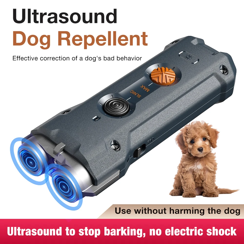 Repelente ultrasónico de perros, dispositivos disuasoria de corteza de perro portátil, entrenador de perros recargable antiladridos con linterna LED, novedad de 2023