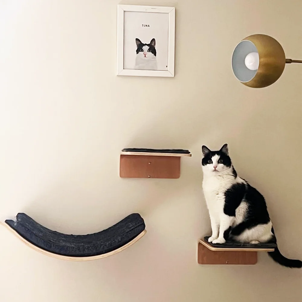 Construya un sistema de pared vertical para gatos en casa para que su gato pueda saltar, jugar y dormir.Esta cama interior para gatos evita que se aburren y proporciona un espacio seguro lejos de otros animales que miran al reino del gato.