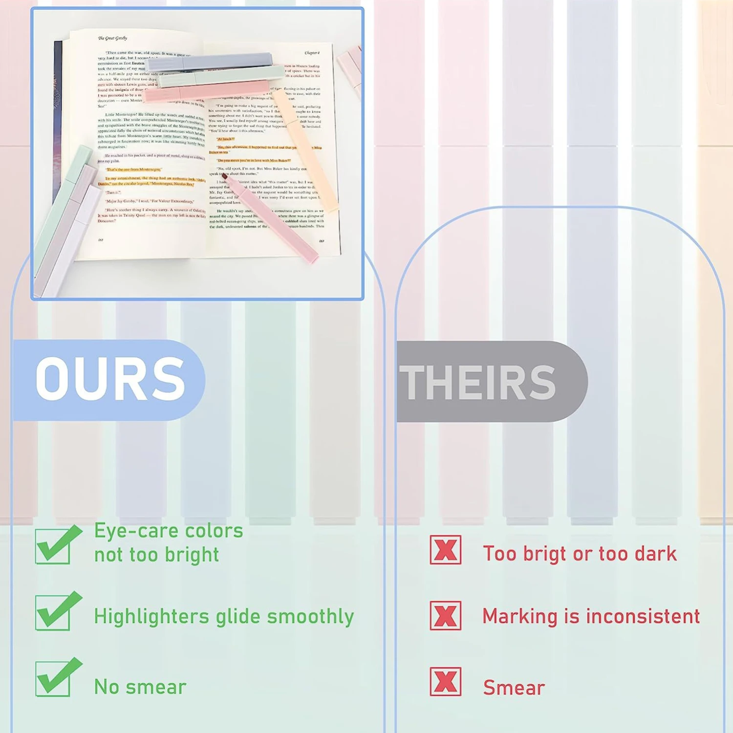 [Bolígrafo fluorescente de color claro] Nuestro kit de bolígrafo fluorescente estético utiliza un diseño de color suave y suave para proteger los ojos, lo que puede proteger bien los ojos.No te distraerán y te permitirán escribir mejor los puntos clave.Son muy suaves, dando una sensación retro.El color más oscuro aún hace visible el texto resaltado.