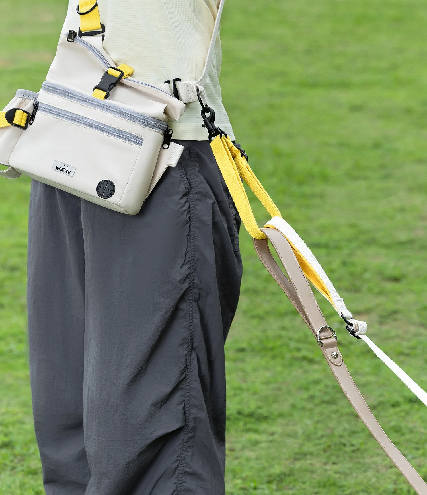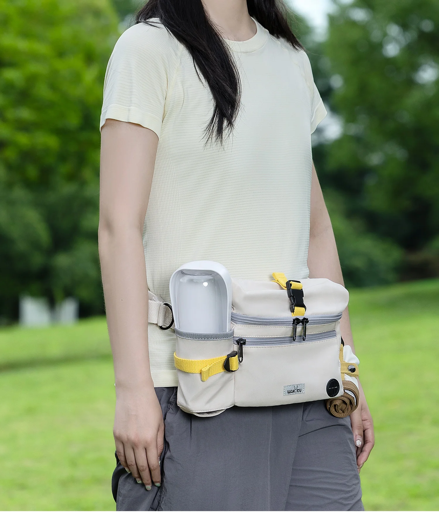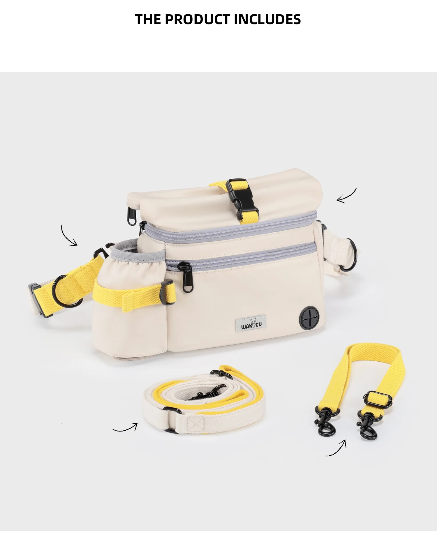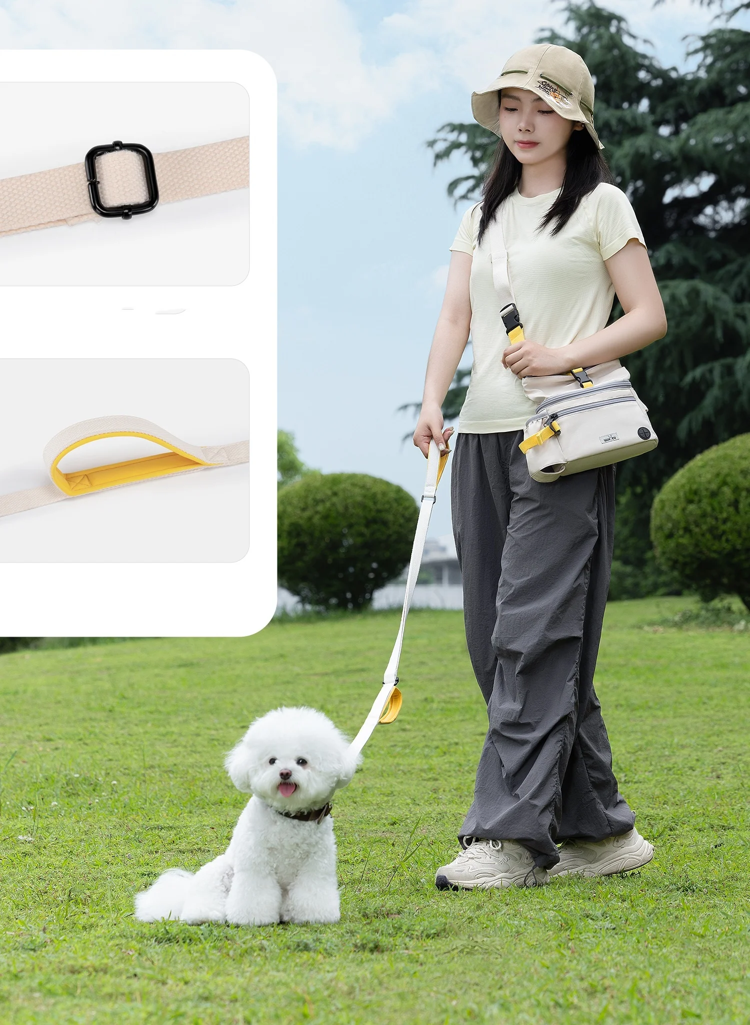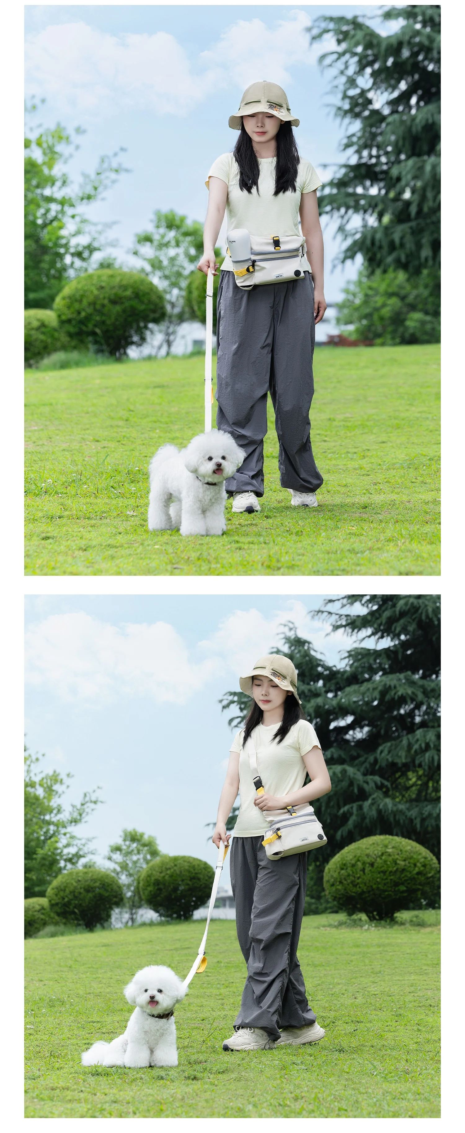Riñonera para mascotas con juego de correa para múltiples mascotas, bolsa de entrenamiento para perros para correr al aire libre, bolsa multifuncional para aperitivos para mascotas con correa de cables