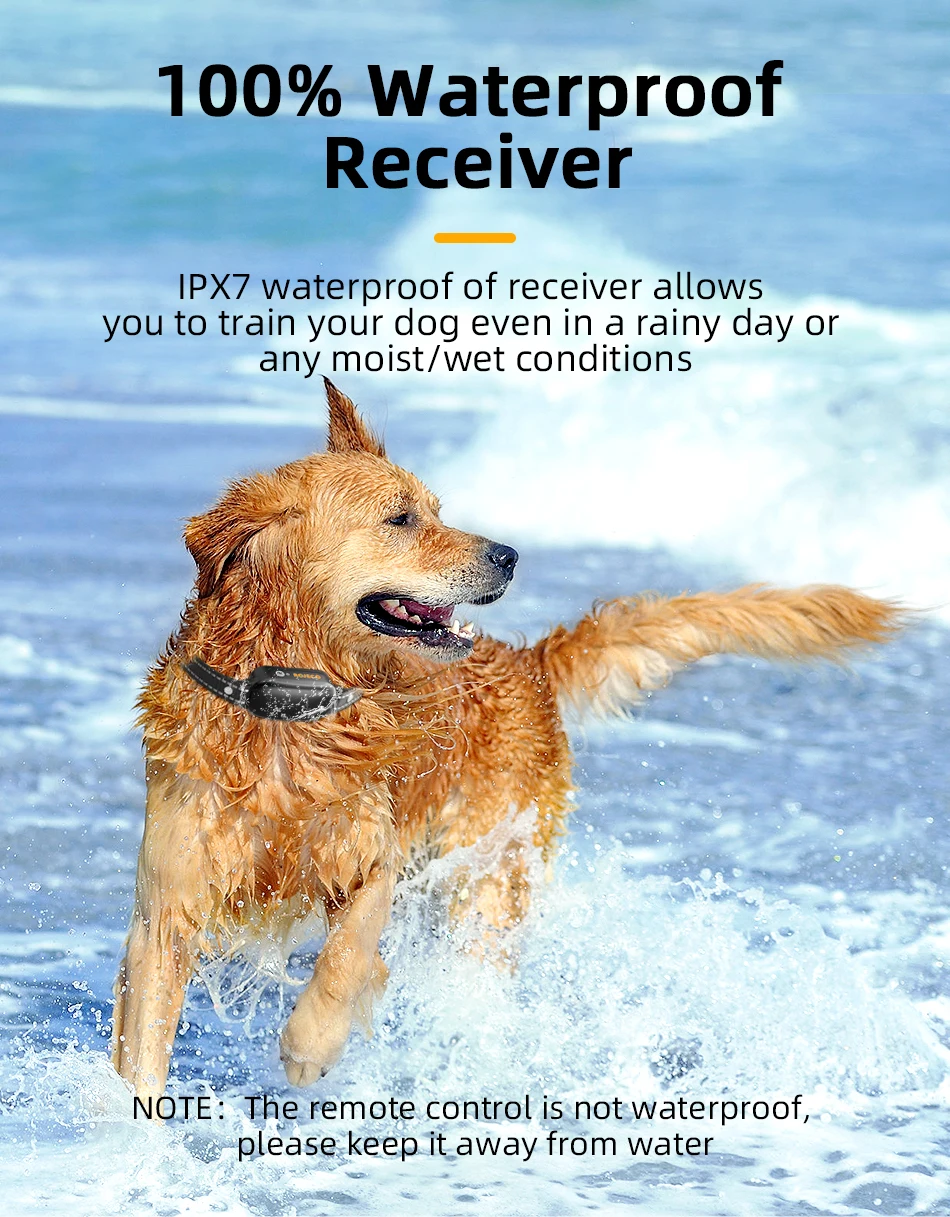 • Impermeable IPX7 :La característica impermeable IPX7 garantiza que el collar se pueda usar en todas las condiciones climáticas, lo que lo hace perfecto para el entrenamiento al aire libre.