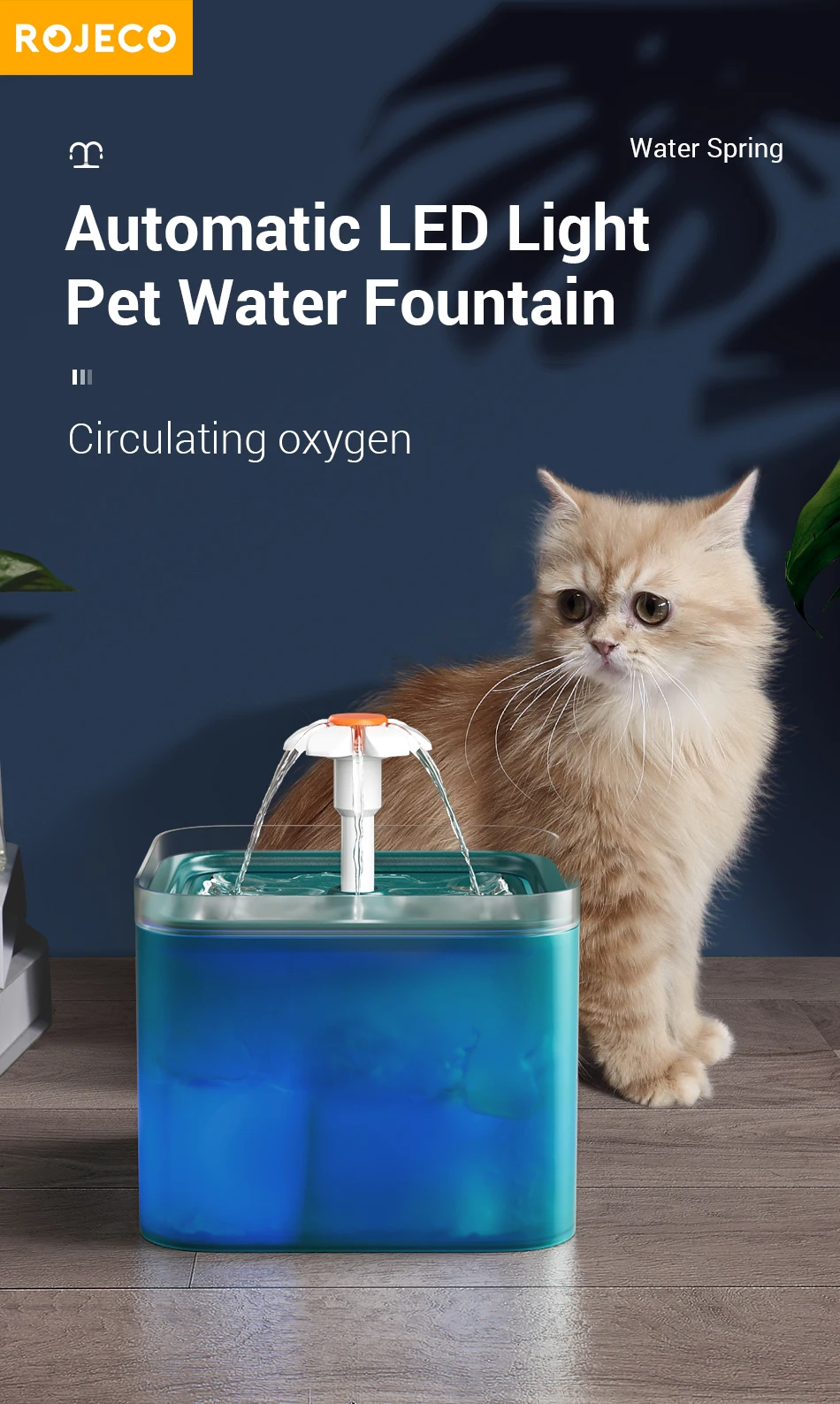 Robeco-filtro de fuente de agua para gatos, dispensador de agua automático LED para mascotas, accesorios para gatos, bebedero automático para gatos