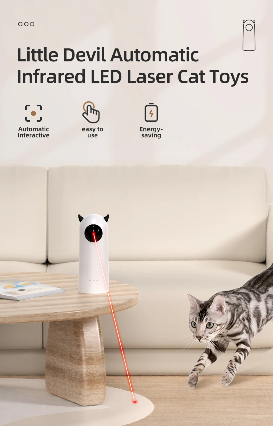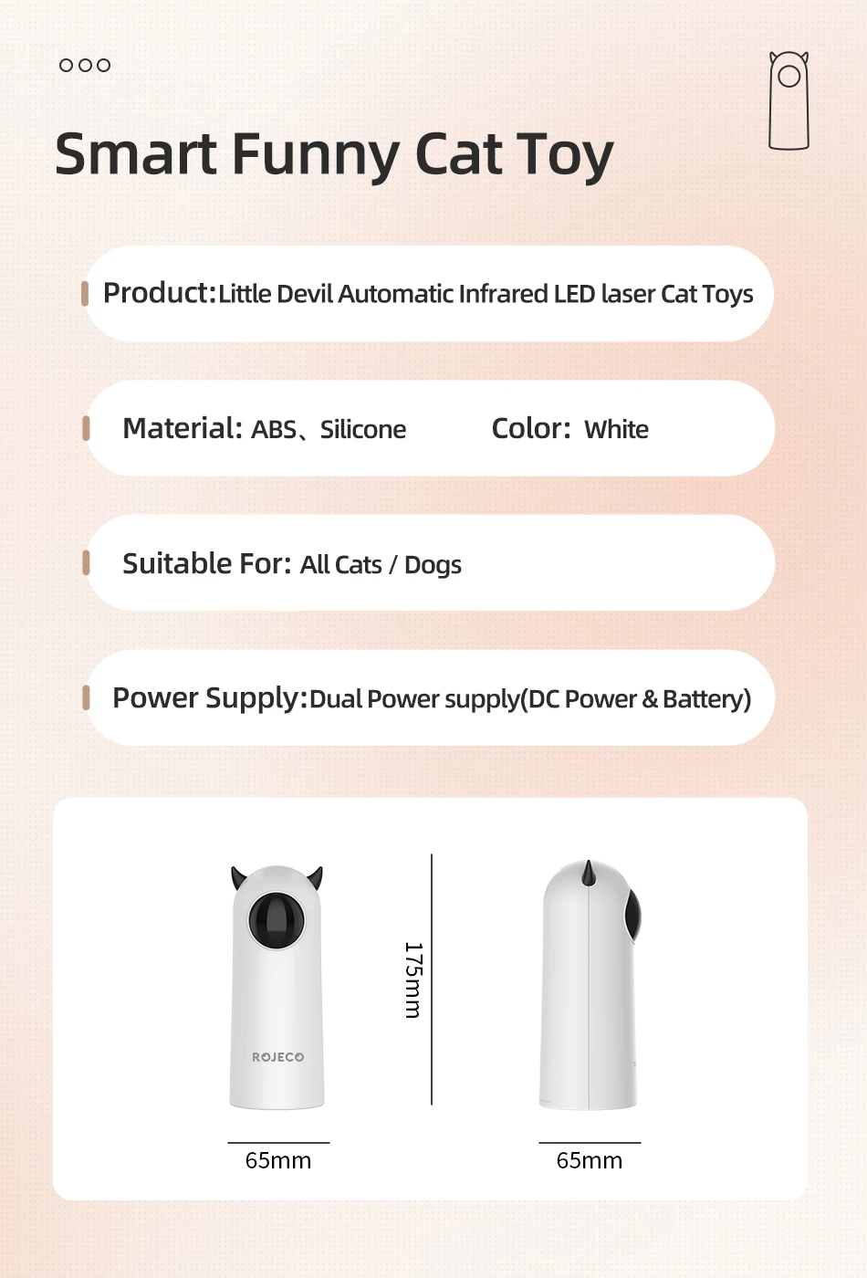 • Luz LED :El juguete automático para gatos Rojas cuenta con una luz LED brillante que atrae la atención de su gato y lo mantiene ocupado en el tiempo de juego.